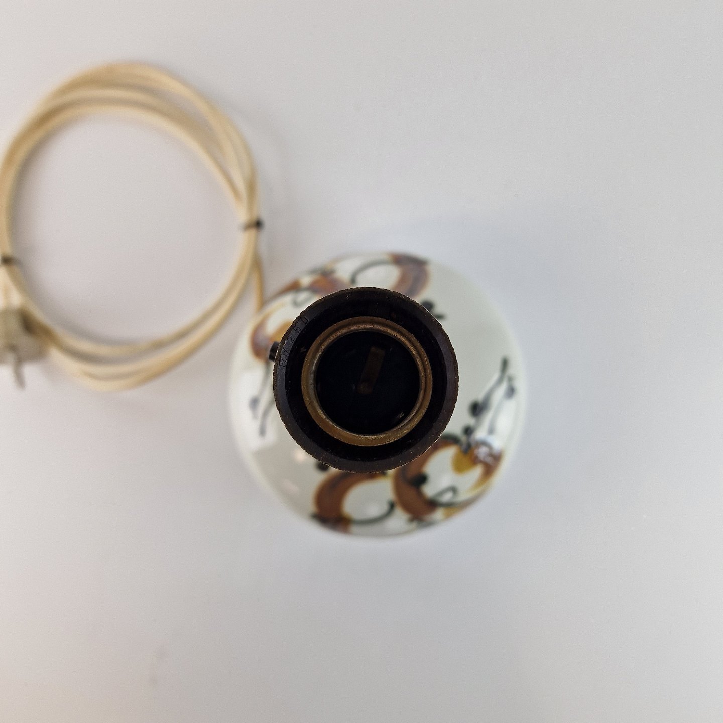 Bordlampe af fajance med dekoration i gule og brune farver. Nr. 680/3706