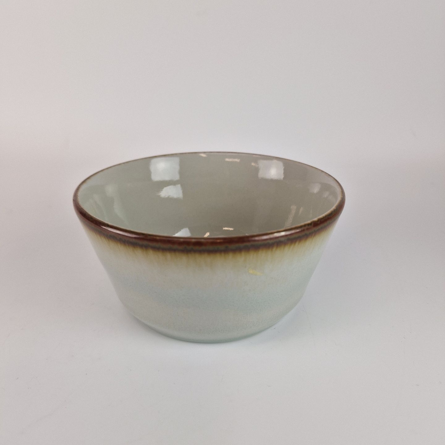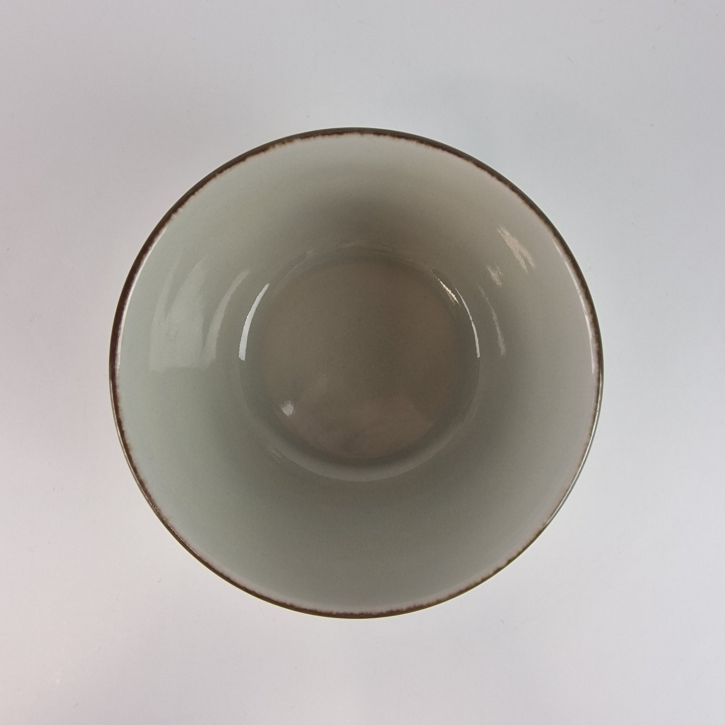 Diskos er af ovnfast stentøj. Stellet er gråt og håndmalet med brune og grønlige detaljer
