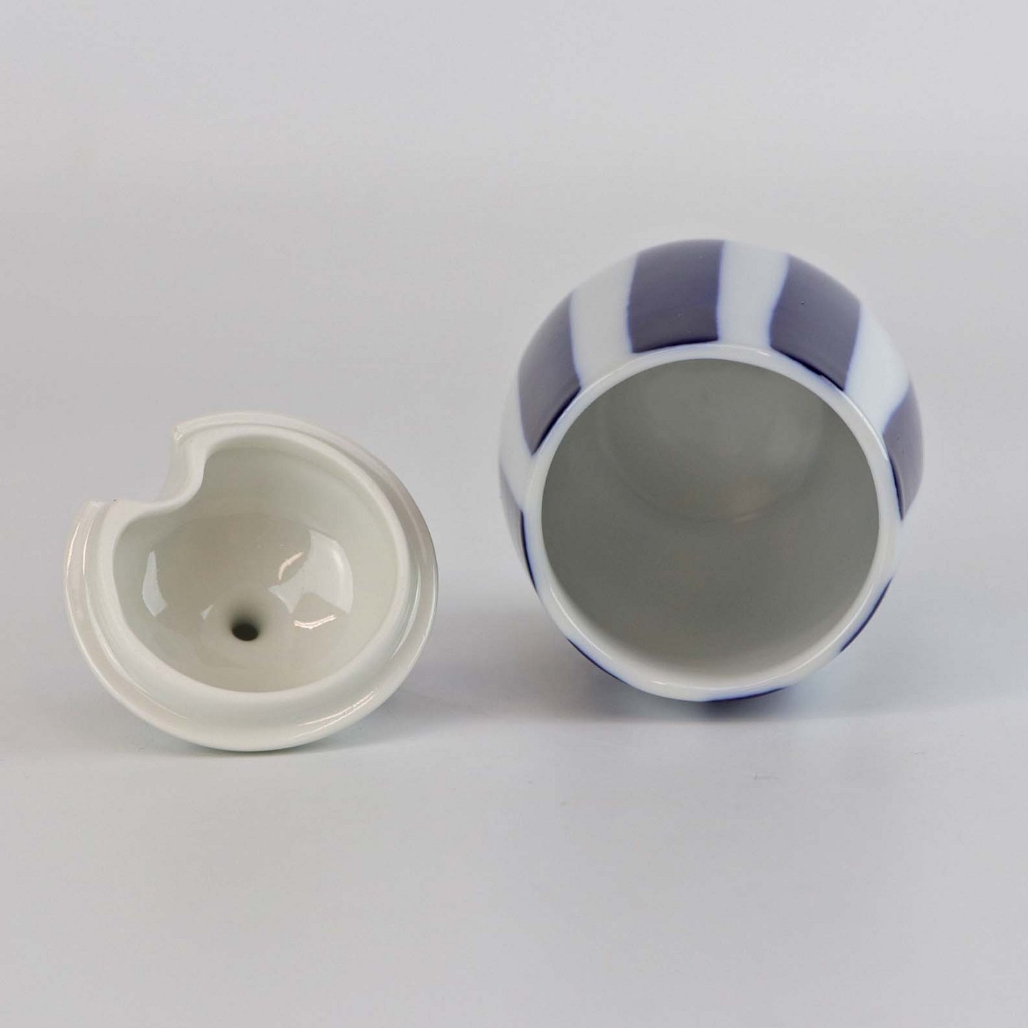 Lille sennepskrukke med låg i porcelæn fra stellet blå striber