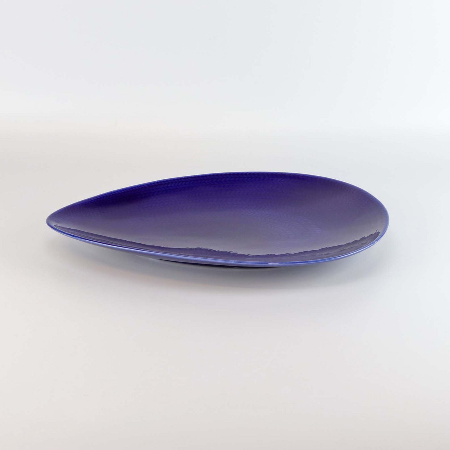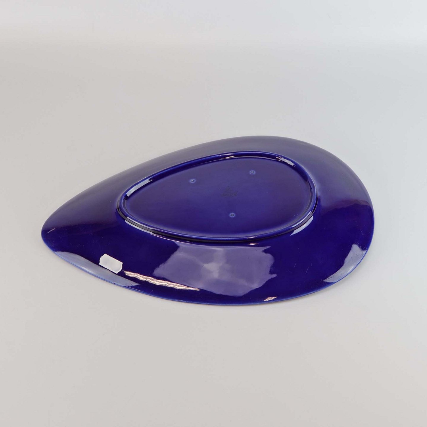 Stor dråbeformet fad i fajance fra stellet Blå Eld nr. 681