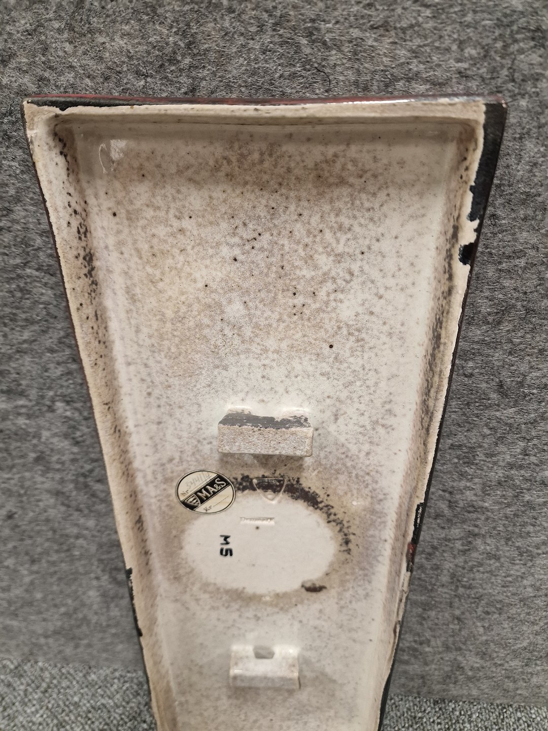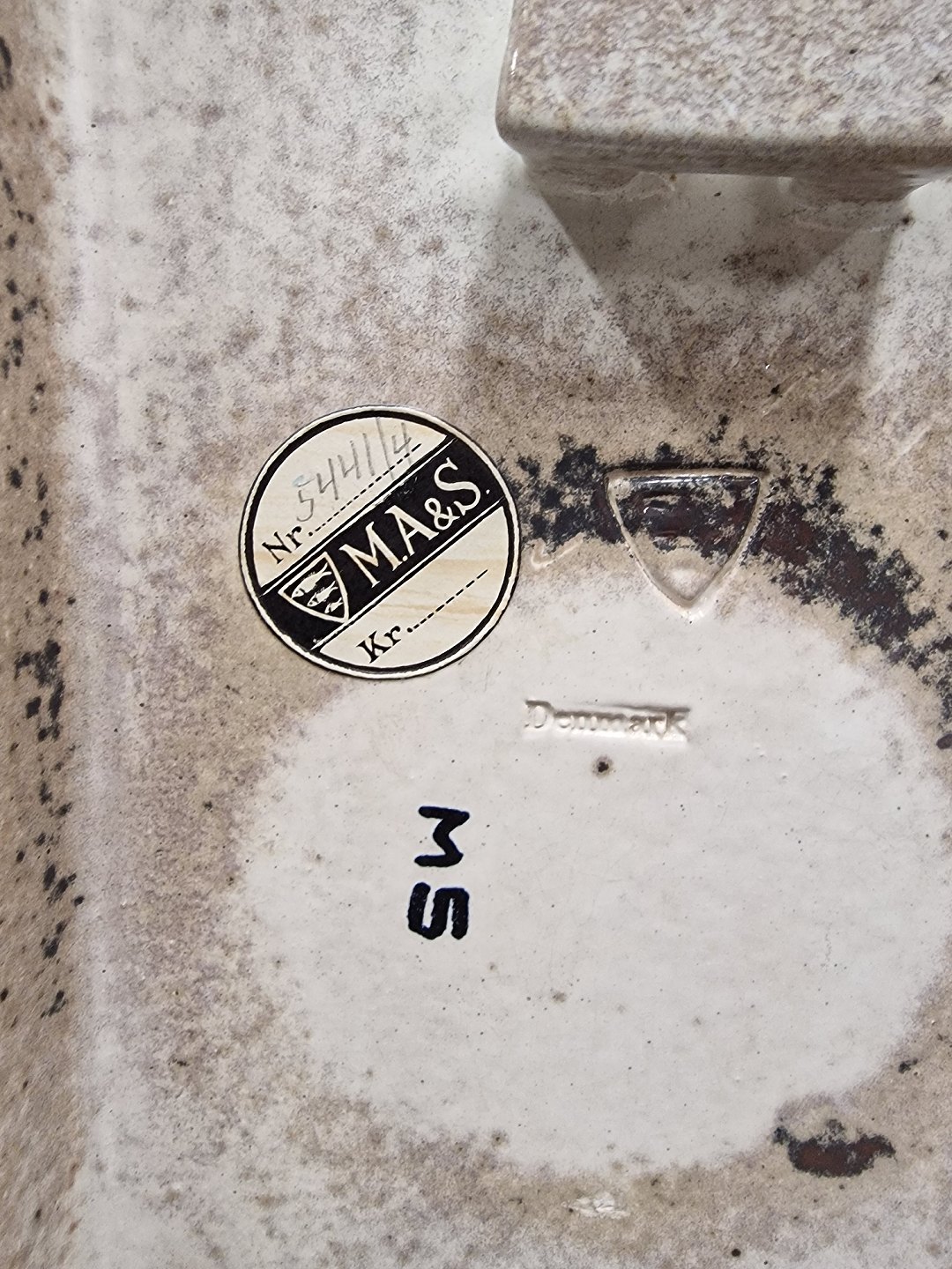 Signeret M S og logoet med 3 fisk som er Rønnes byvåben
