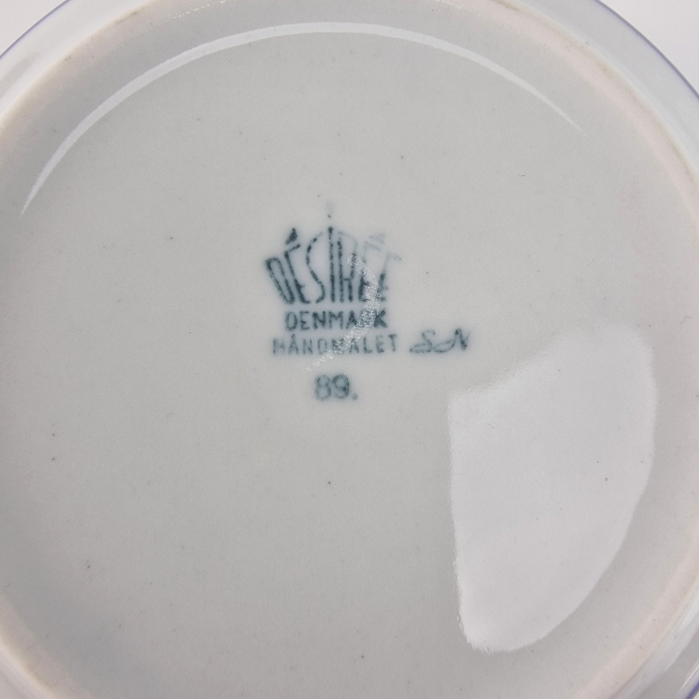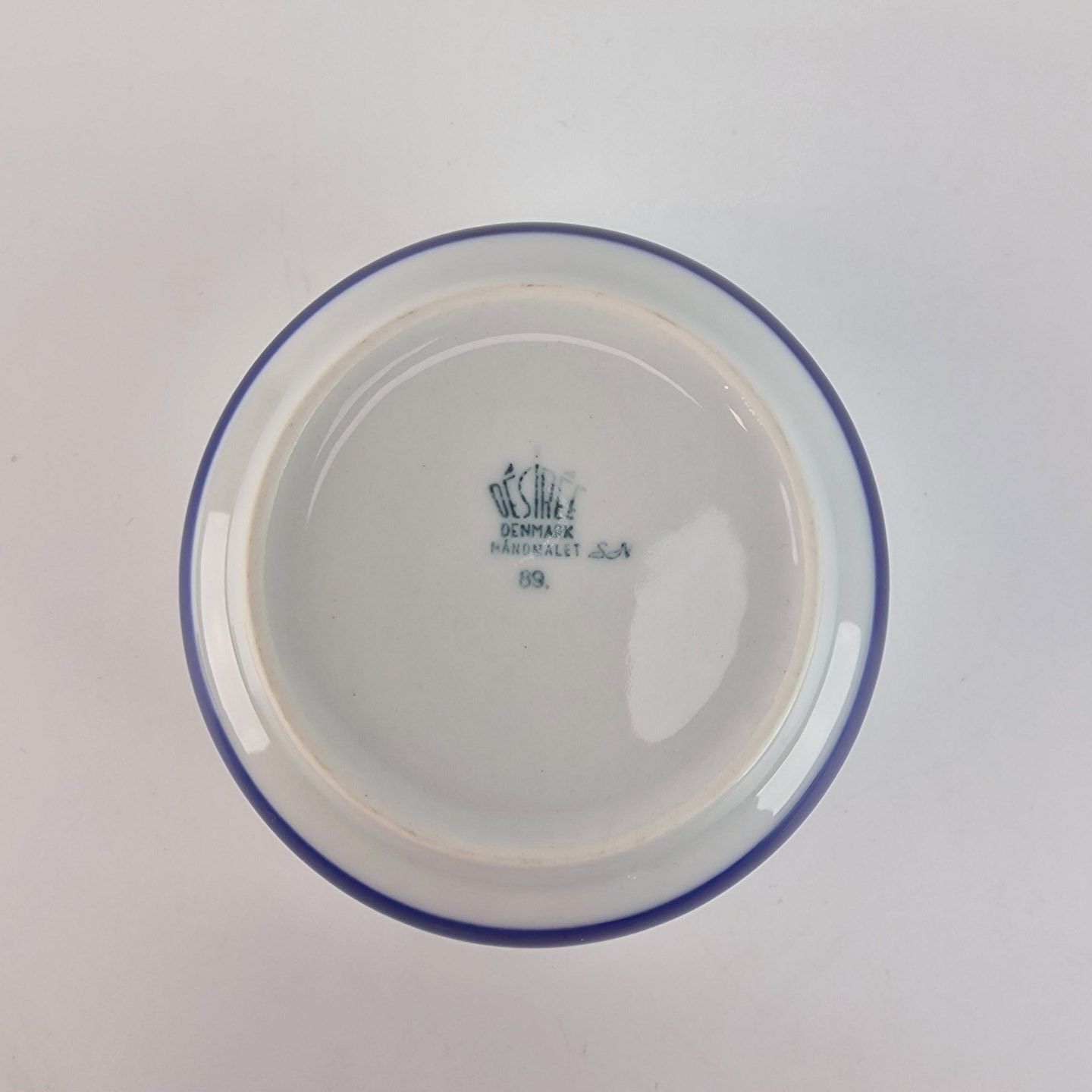 Springtime er af porcelæn, som er glaseret hvidt, malet med blå striber og abstrakt mønster i en lys grøn og blå farve.