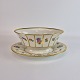Henriette er af porcelæn og har motiver af små blomsterbuketter og guldstreger på det kantede stel.