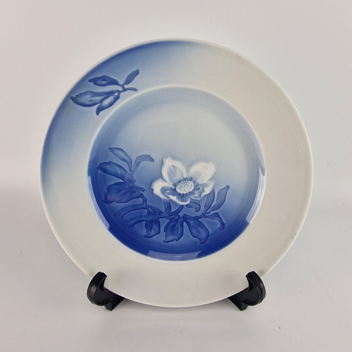 Julerose er hvidt porcelæn med gradueret blå farver, dekoreret med et motiv af en hvid julerose