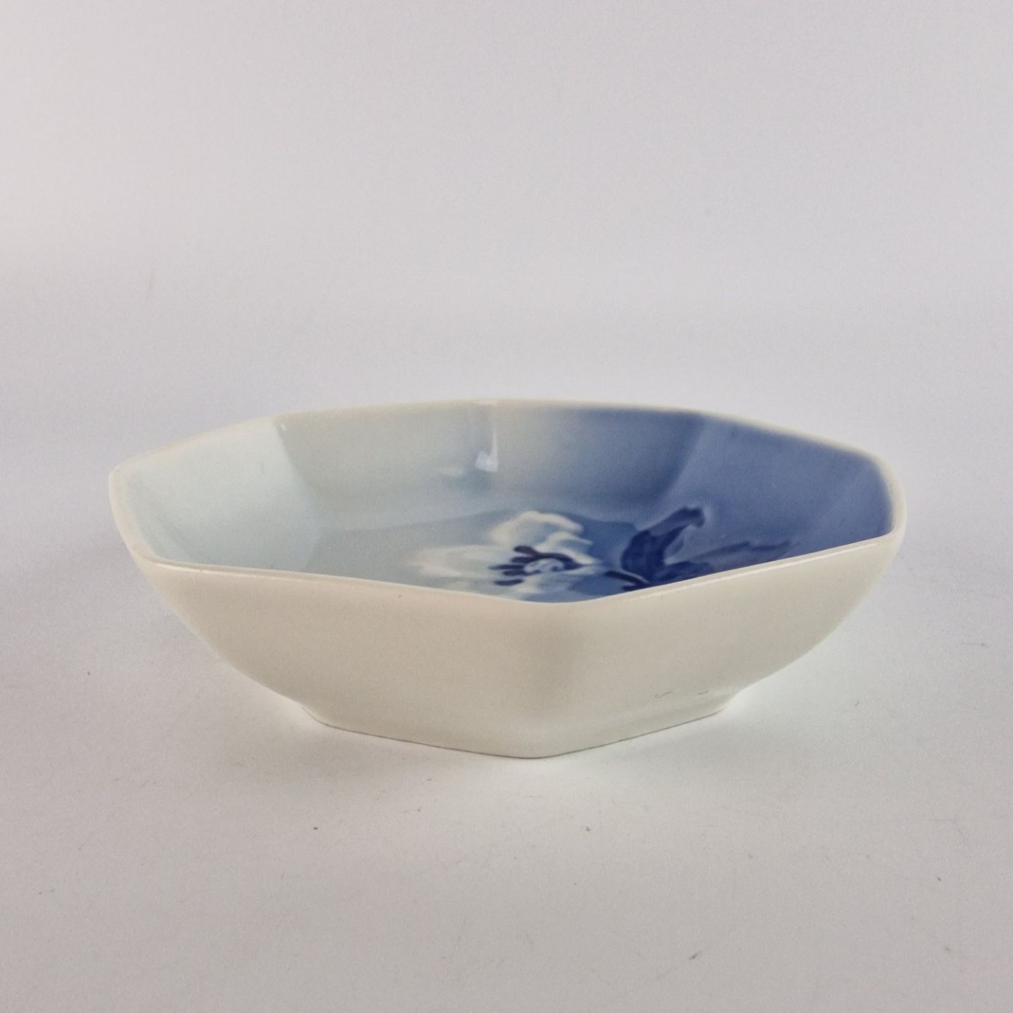 Julerose er hvidt porcelæn med gradueret blå farver, dekoreret med et motiv af en hvid julerose