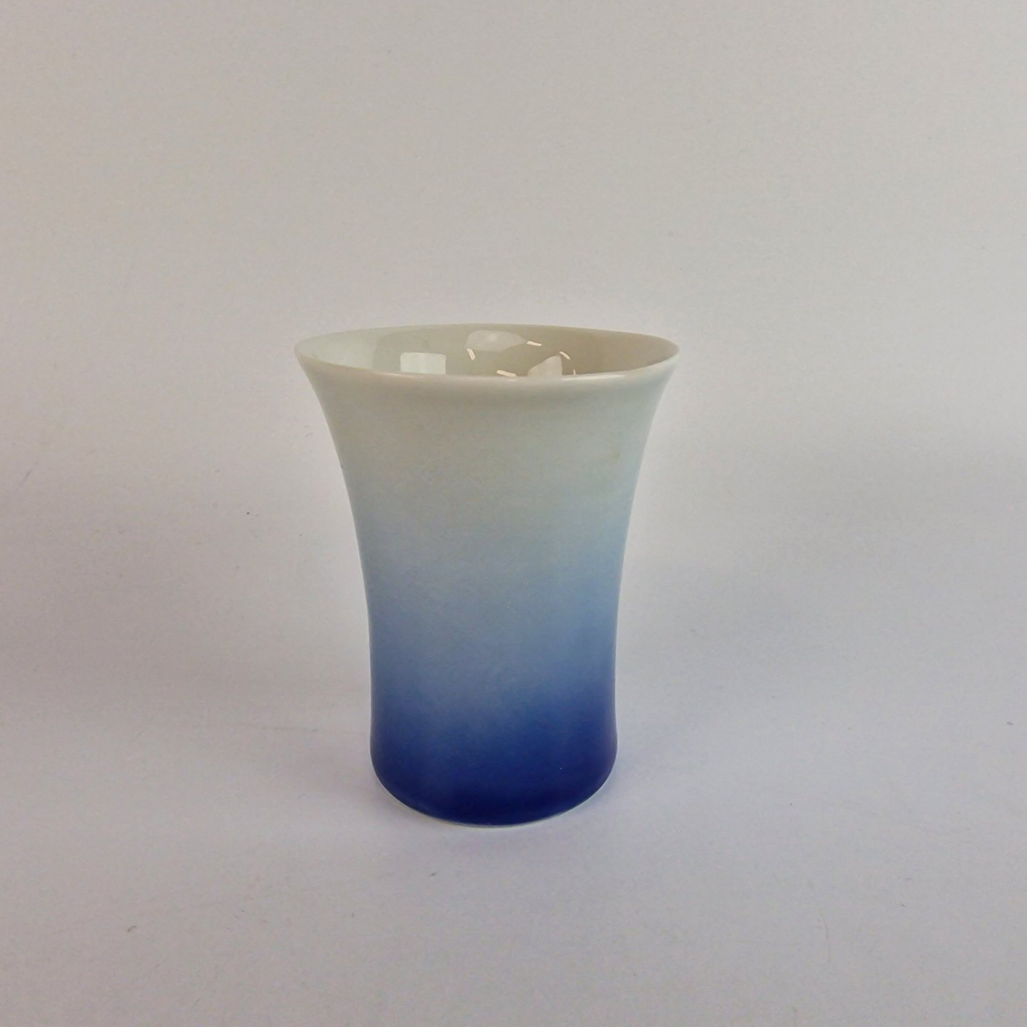 Julerose er hvidt porcelæn med gradueret blå farver, dekoreret med et motiv af en hvid julerose