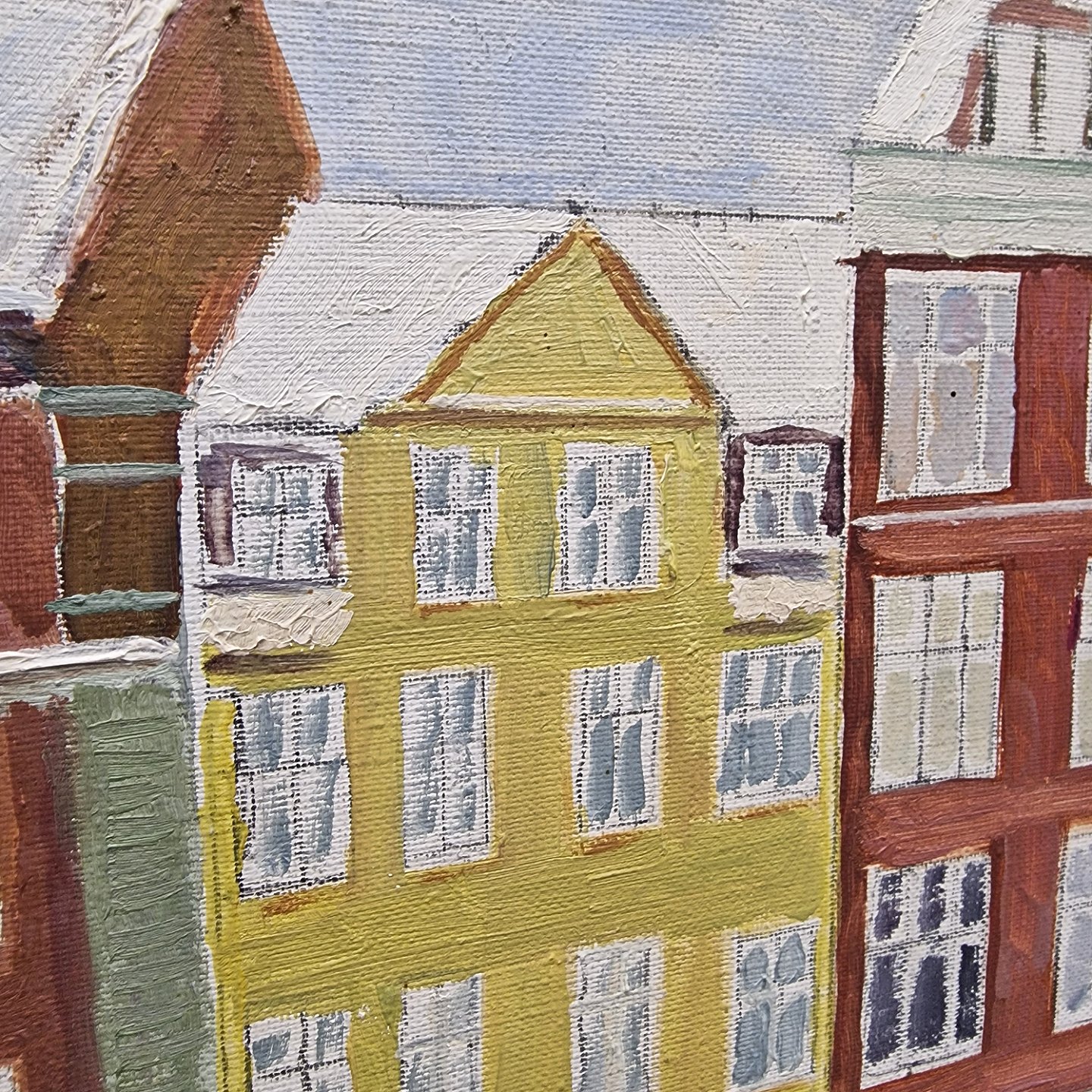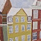 Maleri på lærred med motiv af huse og et skib. Nyhavn