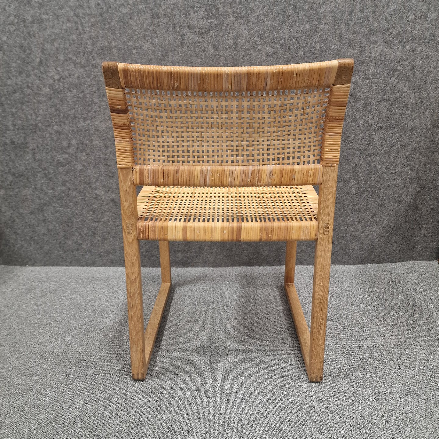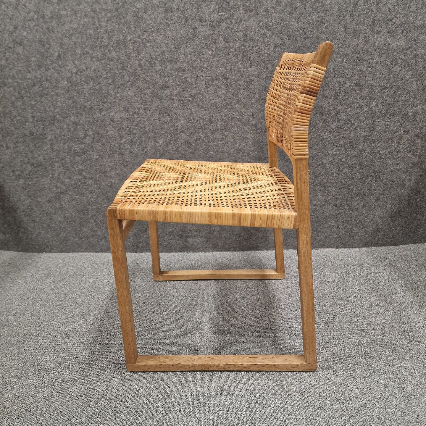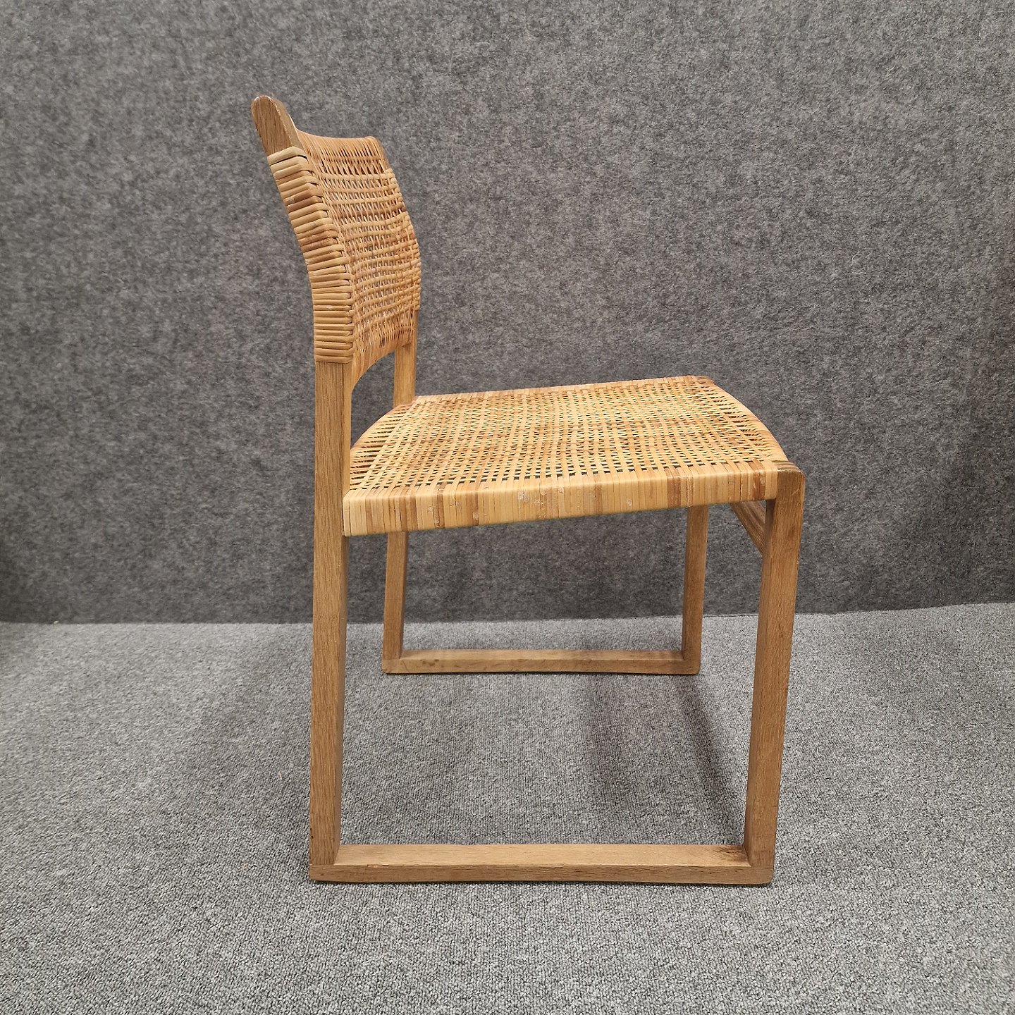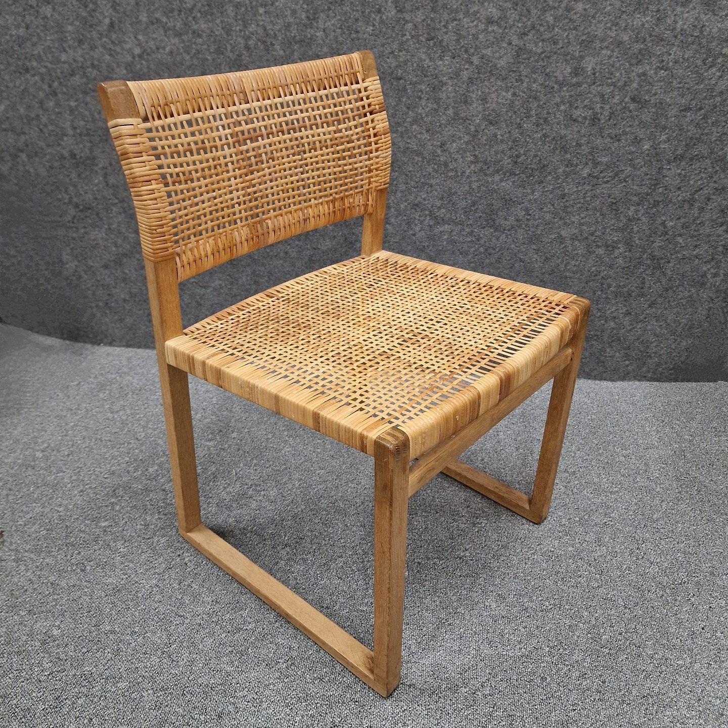 Cane Wicker spisebordsstol model BM61 med stel af massivt egetræ, sæde og ryg er sjeneflet. Designet i 1958