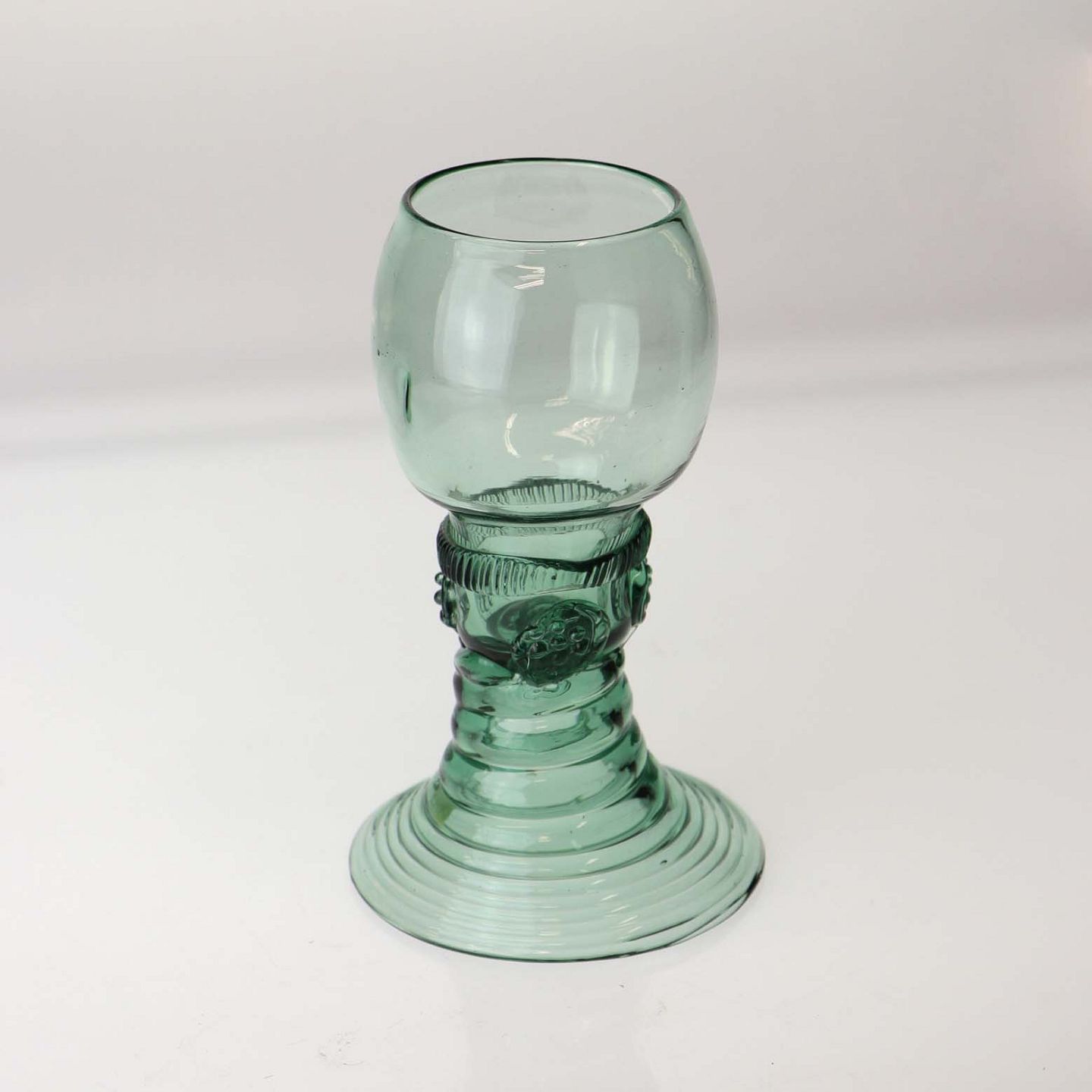 Rømerglas i klart grønt glas, et glas som måske er fra omkring 1800
