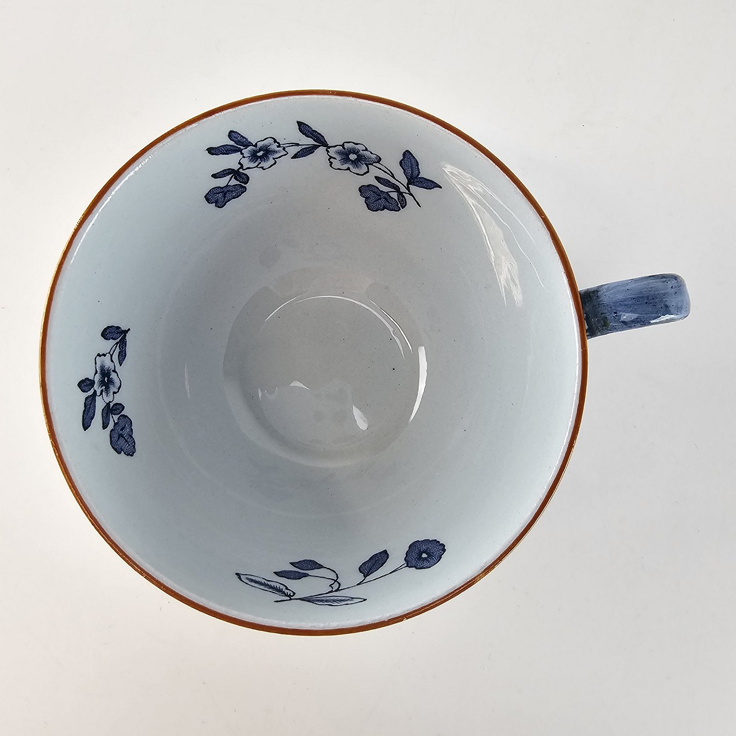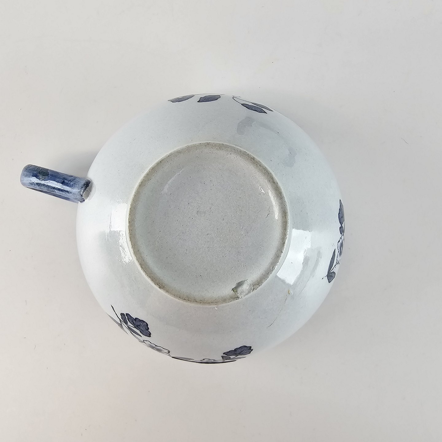 Hvidt porcelæn dekoreret med delikate blå blomster og mønster med blade