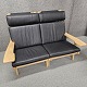 To personers sofa med armlæn og stel i eg. Derudover 3-delt læderhynder i sortlæder i god kvalitet, fremstår ubrugt