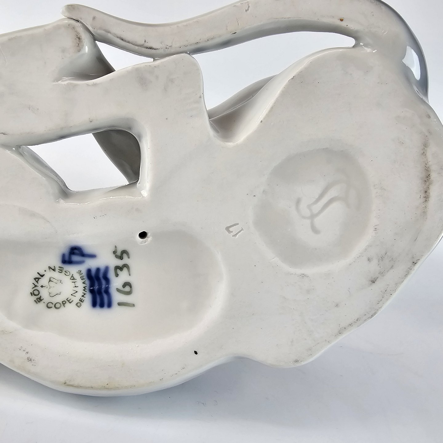 Kongelig porcelæns figur af en liggende hund af racen Pointer nr. 1635