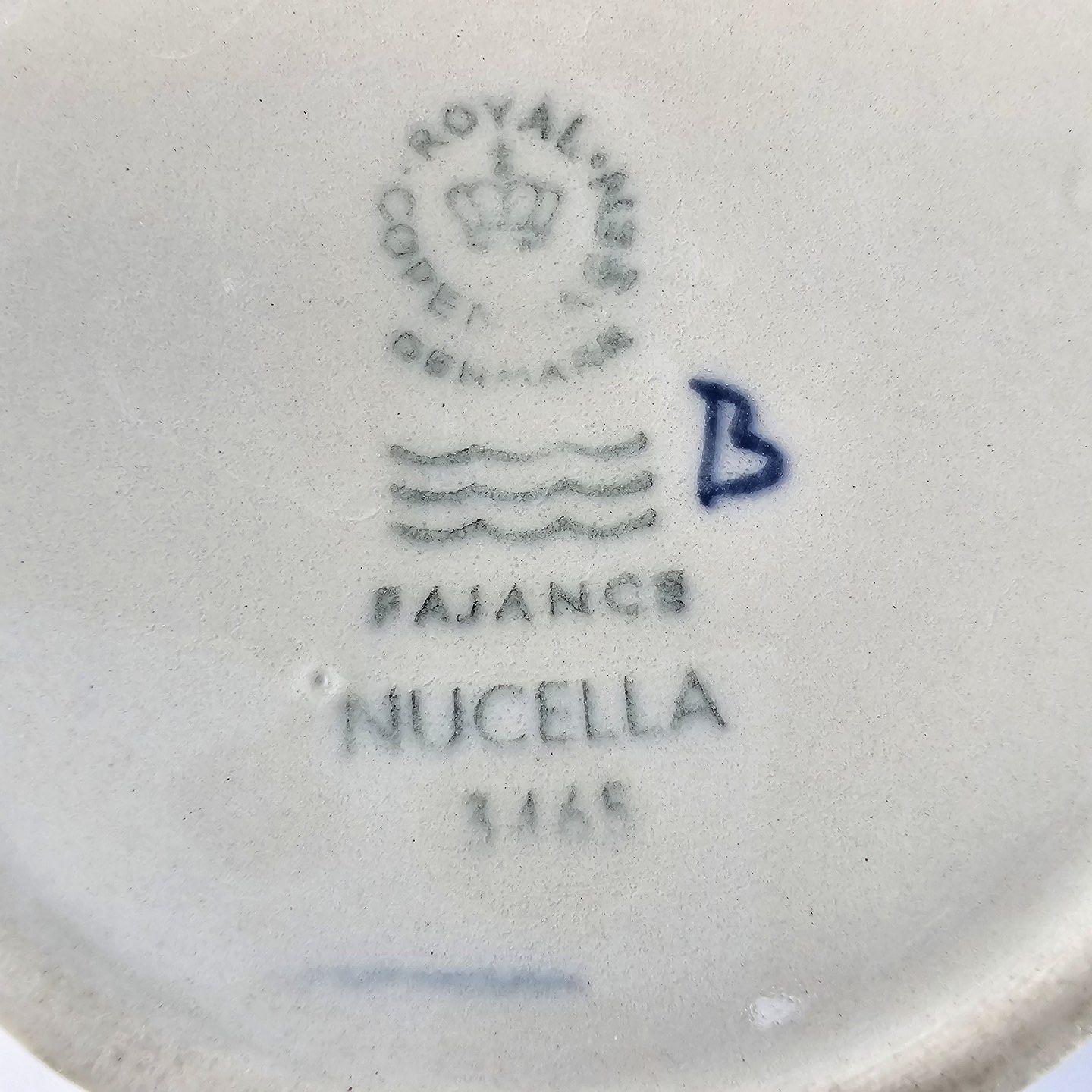 Stellet Nucella er af hvidt glaseret fajance, dekoreret med runde mønstre i brune og gule nuancer. Nucella blev produceret mellem 1969 og 1974.