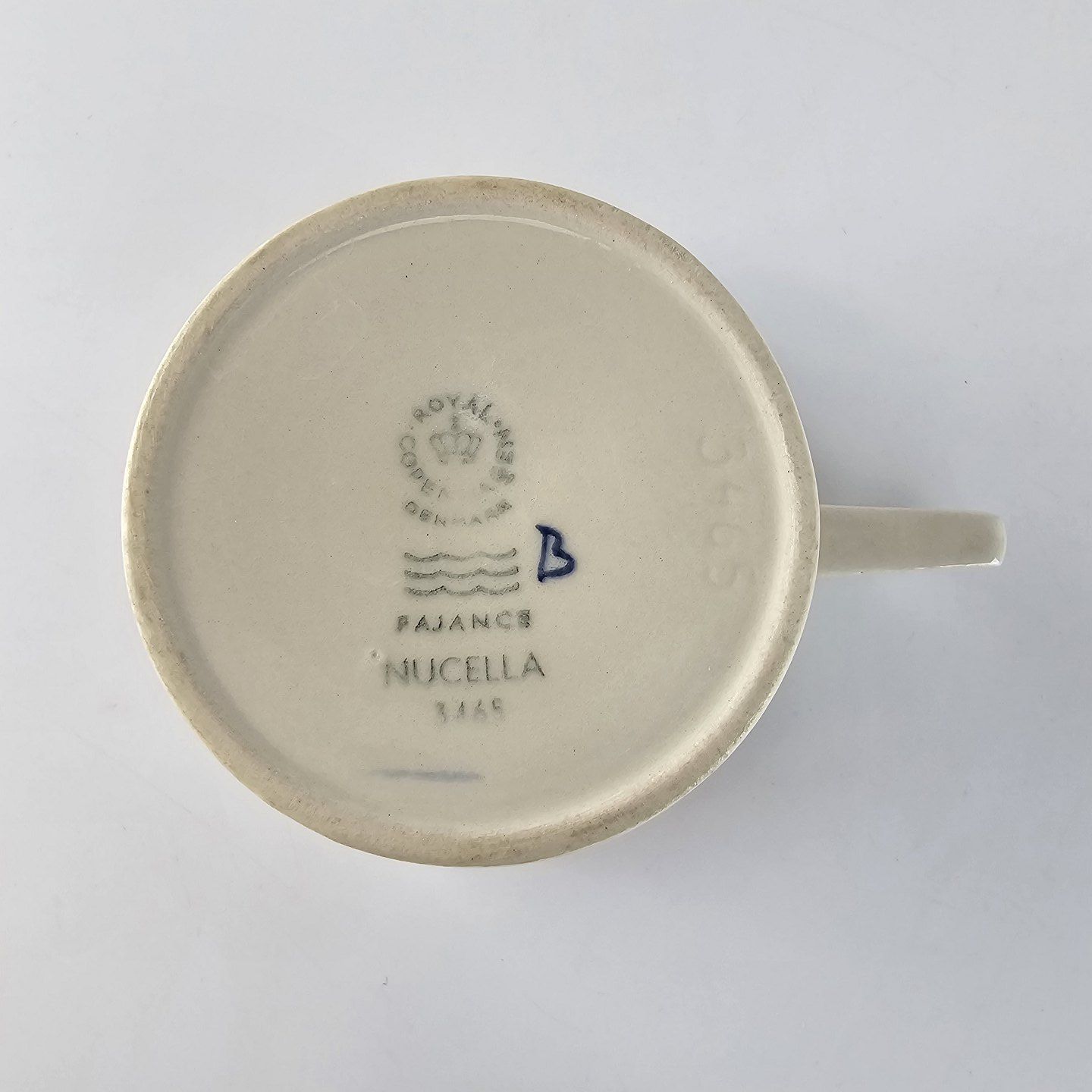 Kaffekop med underkop i fajance fra stellet Nucella nr. 3465