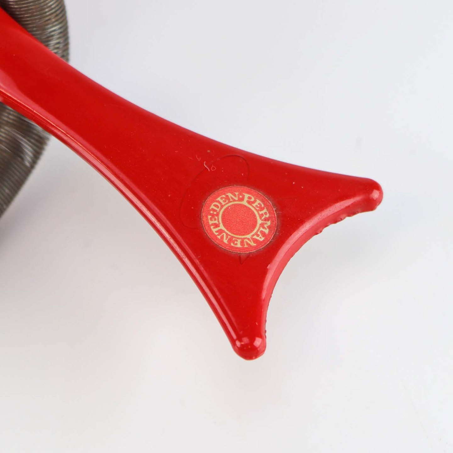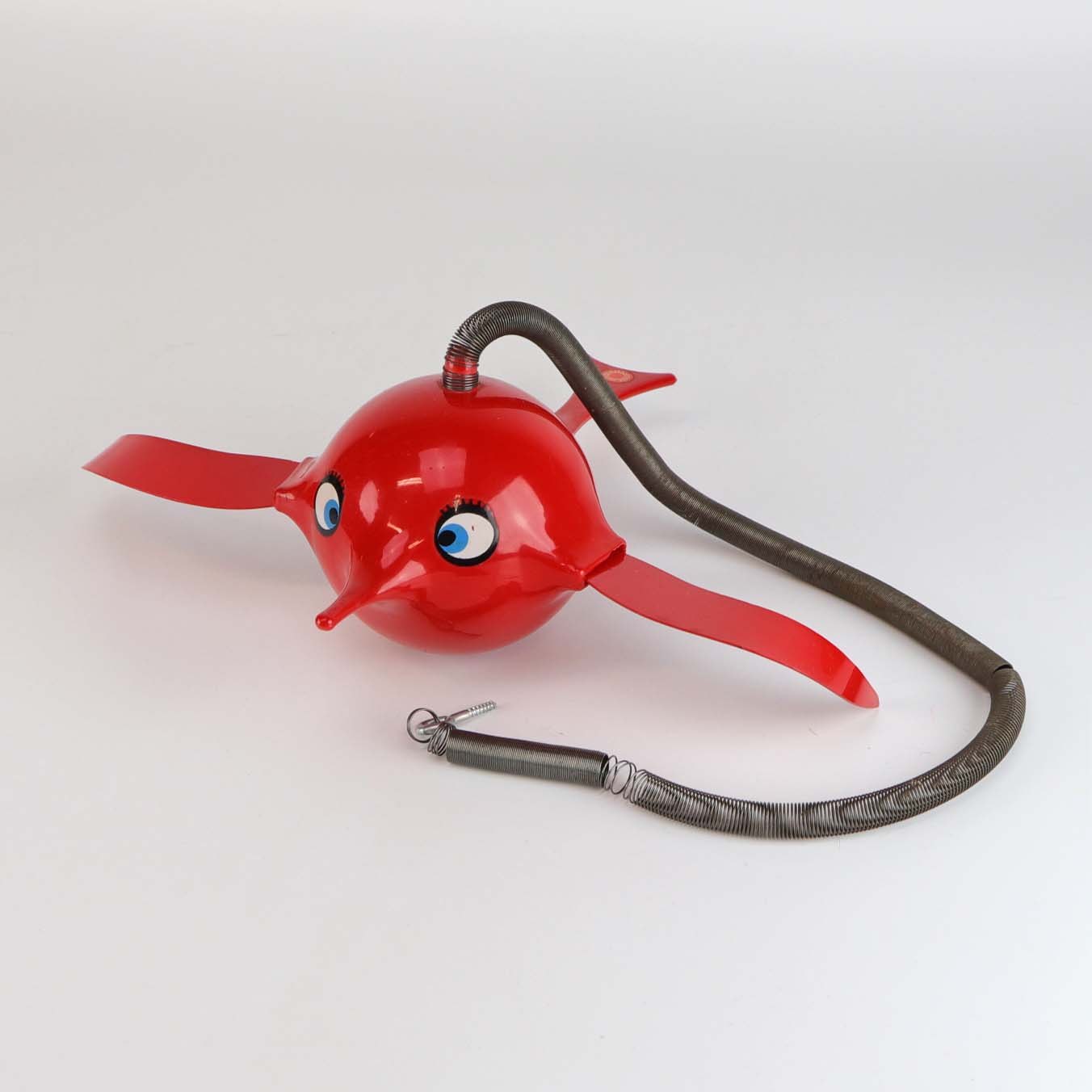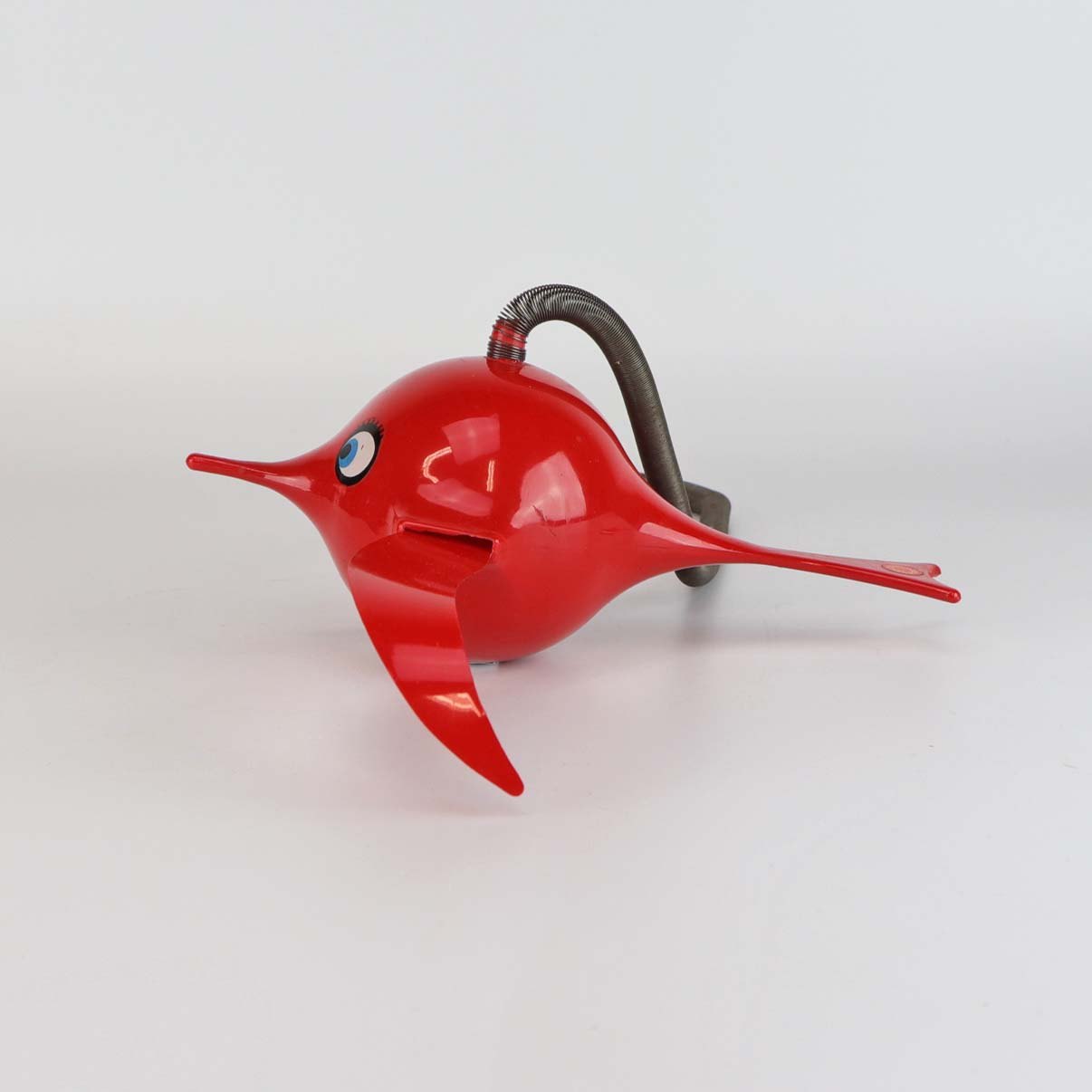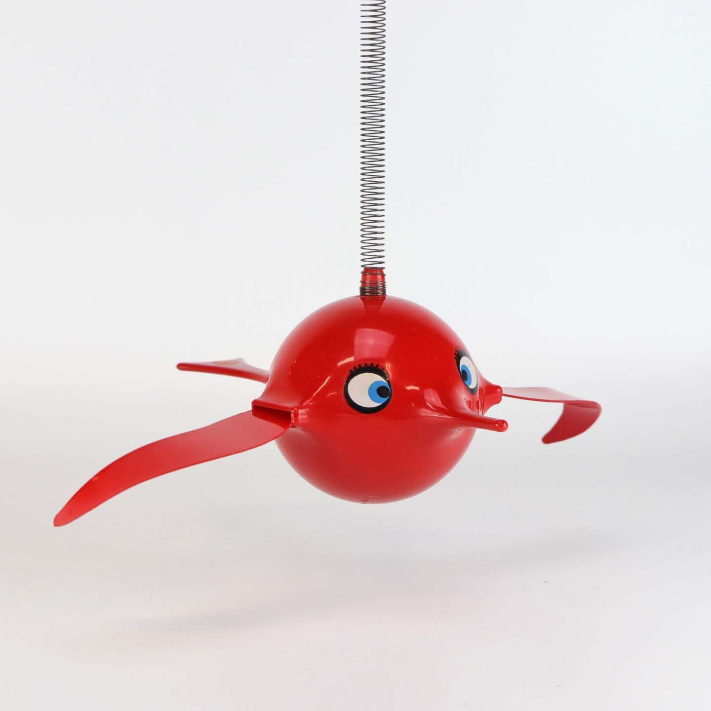 Vintage Hoptimist uro model Busy birdie i rødt plast med metal ophæng