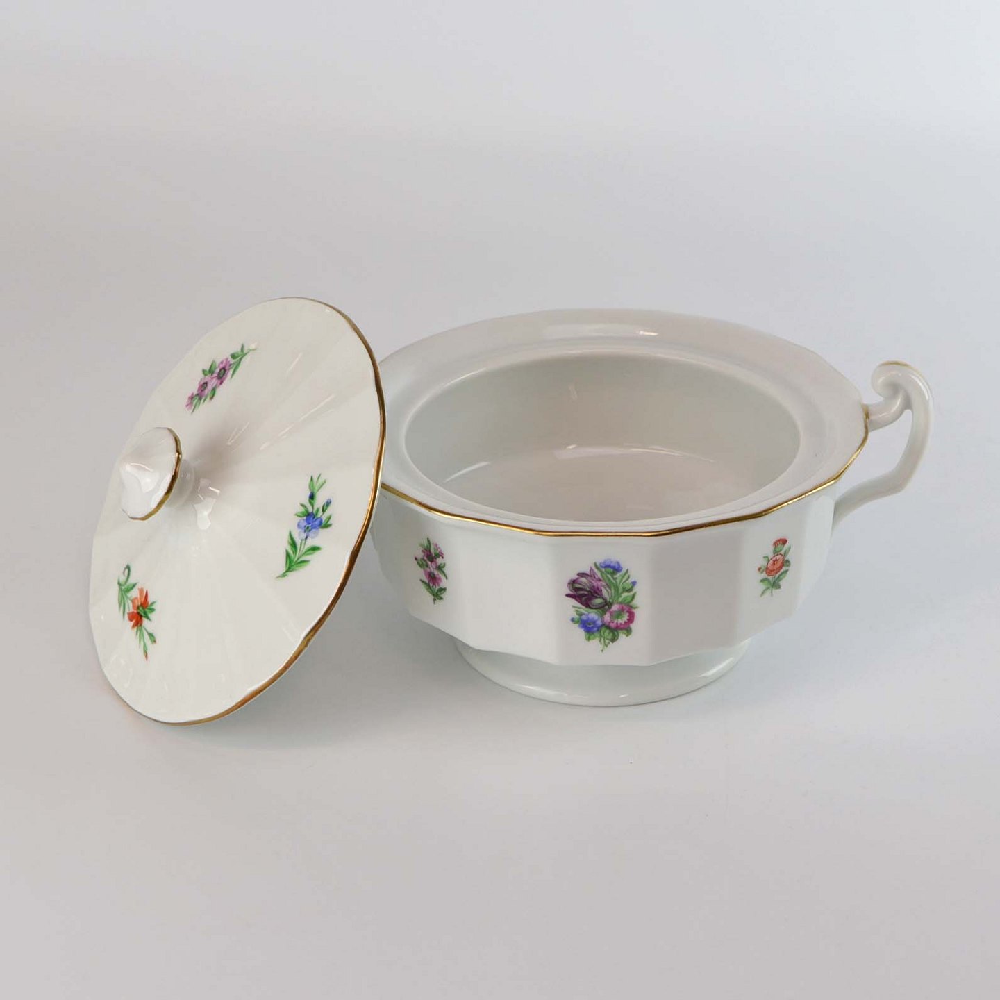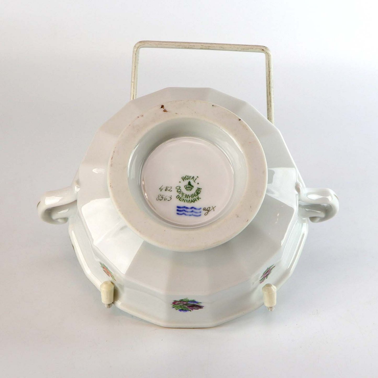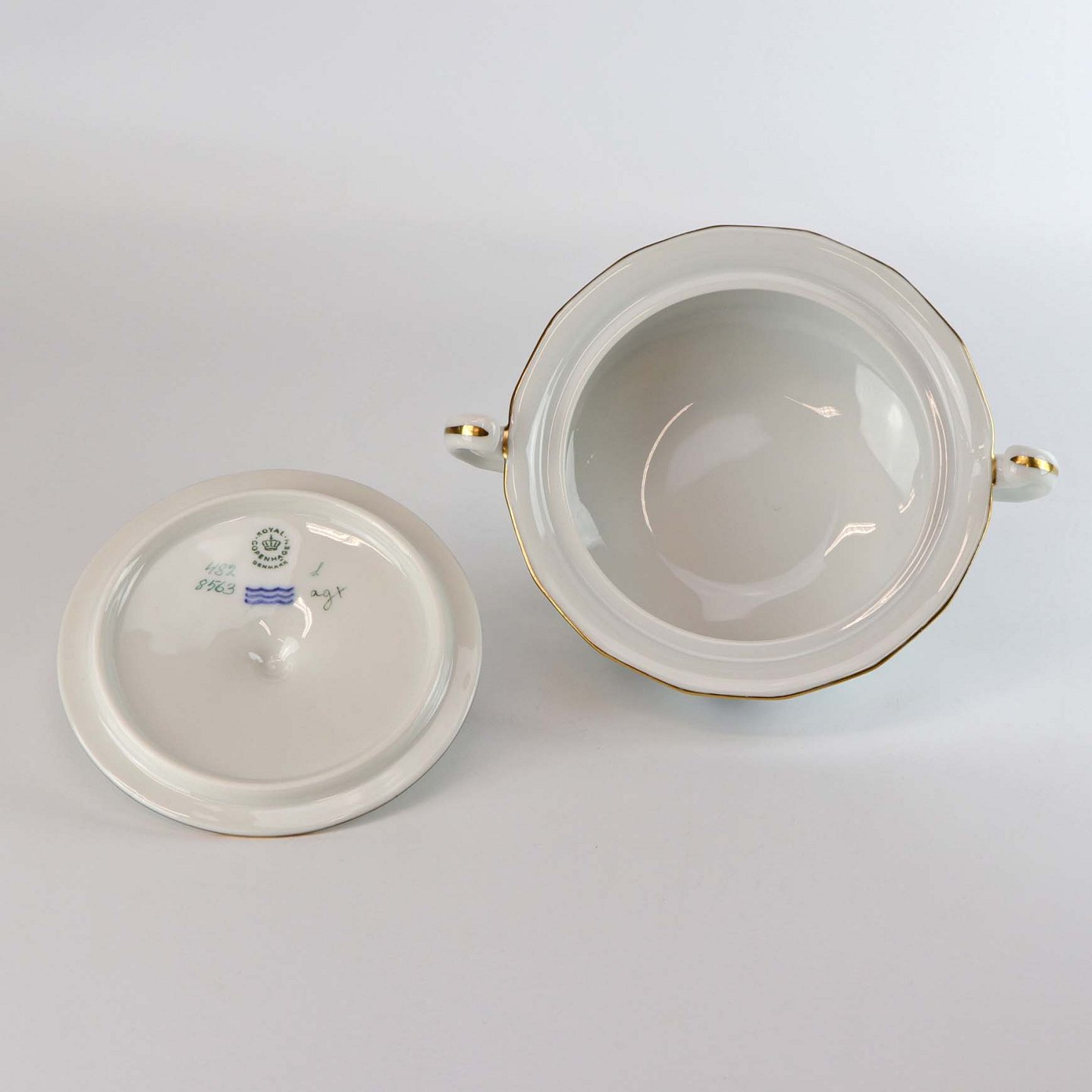 Kongelig sukkerskål i porcelæn med låg fra stellet Strøblomst nr. 482/8563