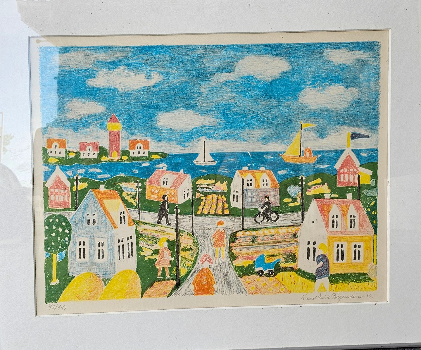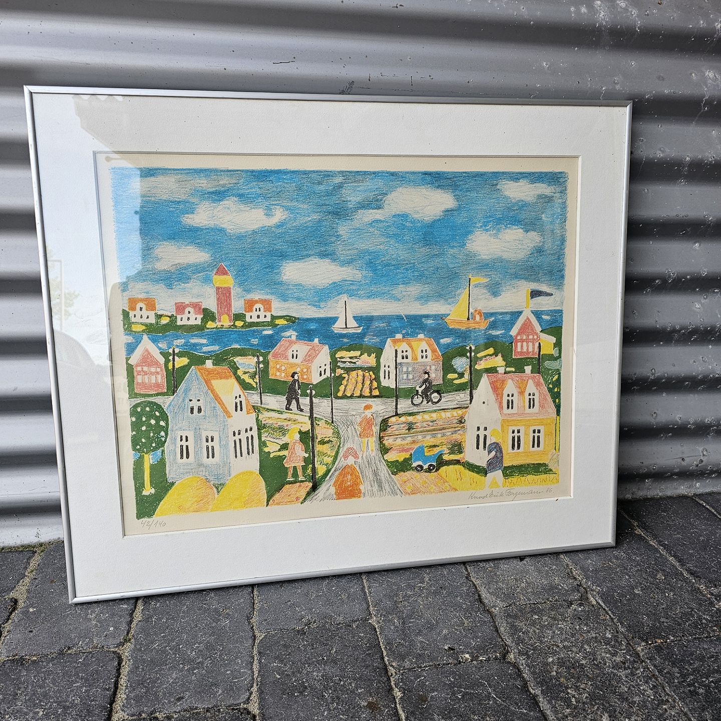 Litografi med motiv af havneby. Dateret 86. Nr. 42/140