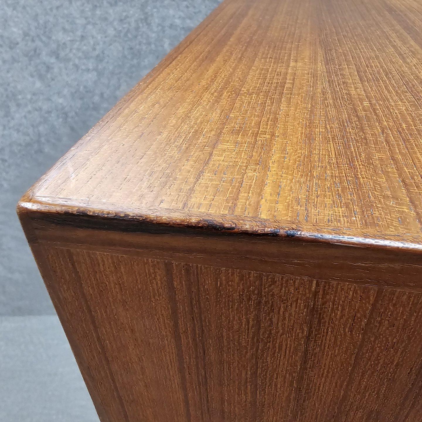 Lille skramme på skuffe, skuffe front i massiv teak