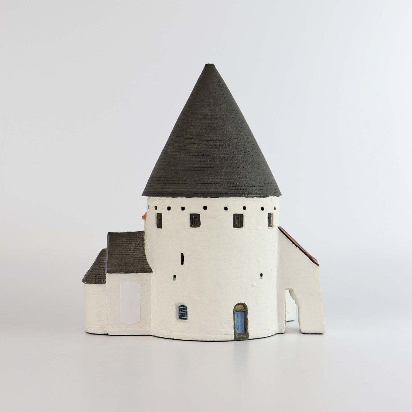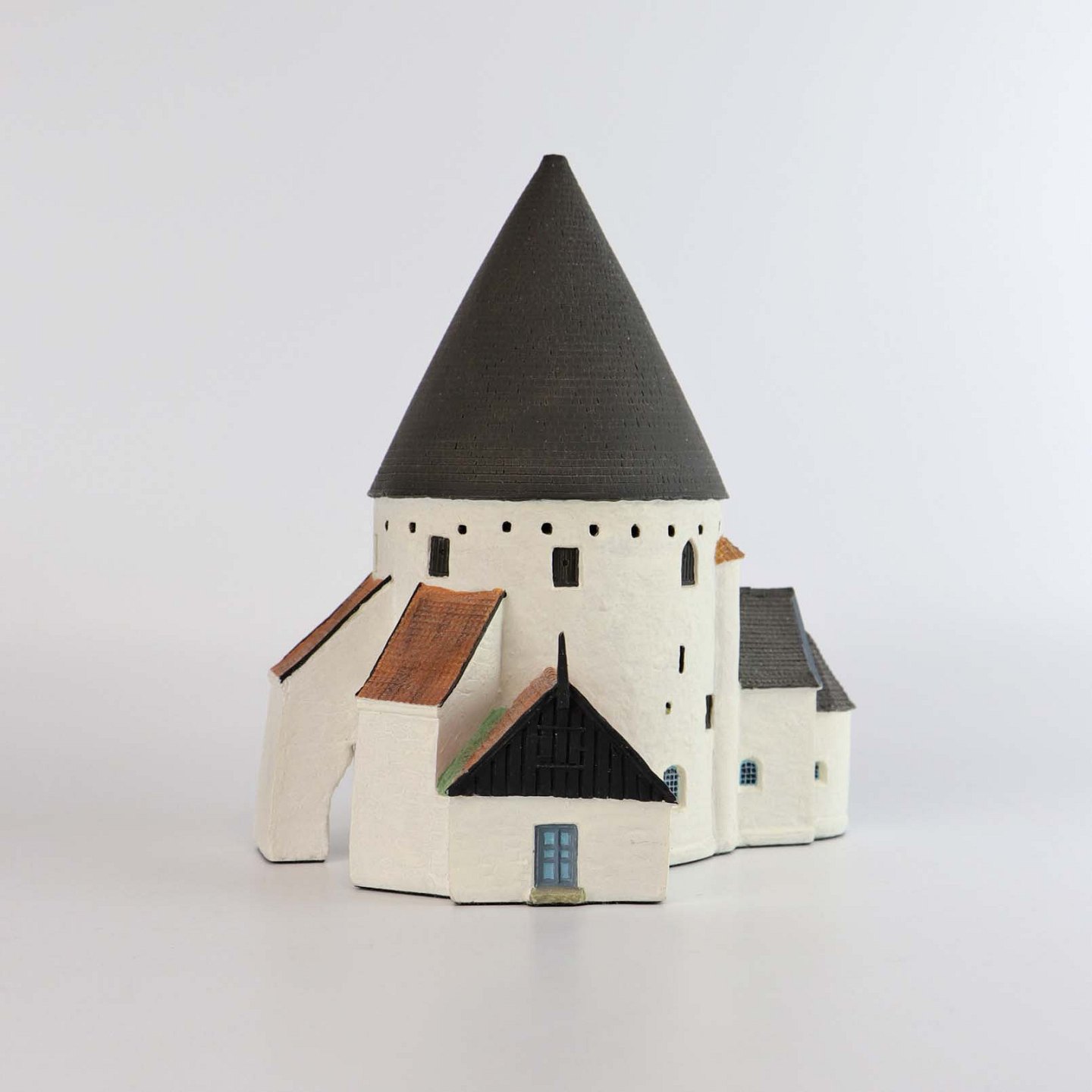 Miniature model i boks af Sant Olafs kirke i Nørre Herred på Bornholm model 56