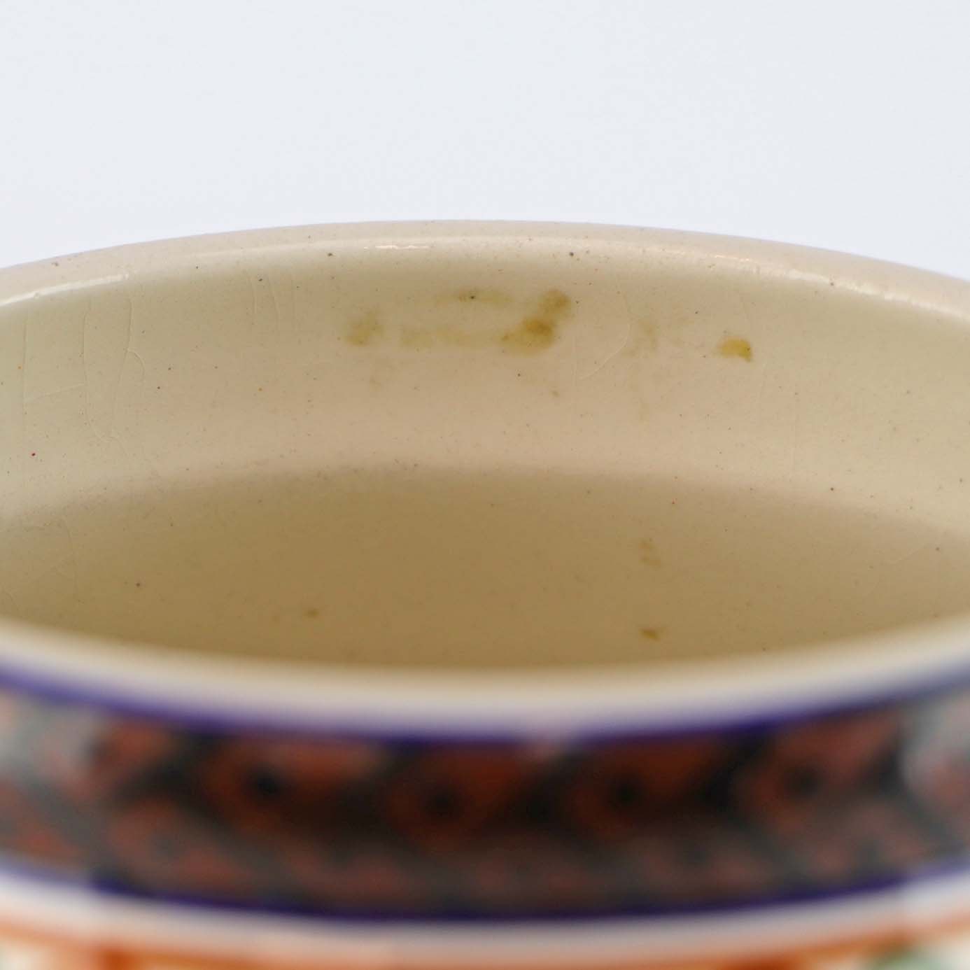 Fremstår med enkelte misfavninger i fajancen ved topkanten