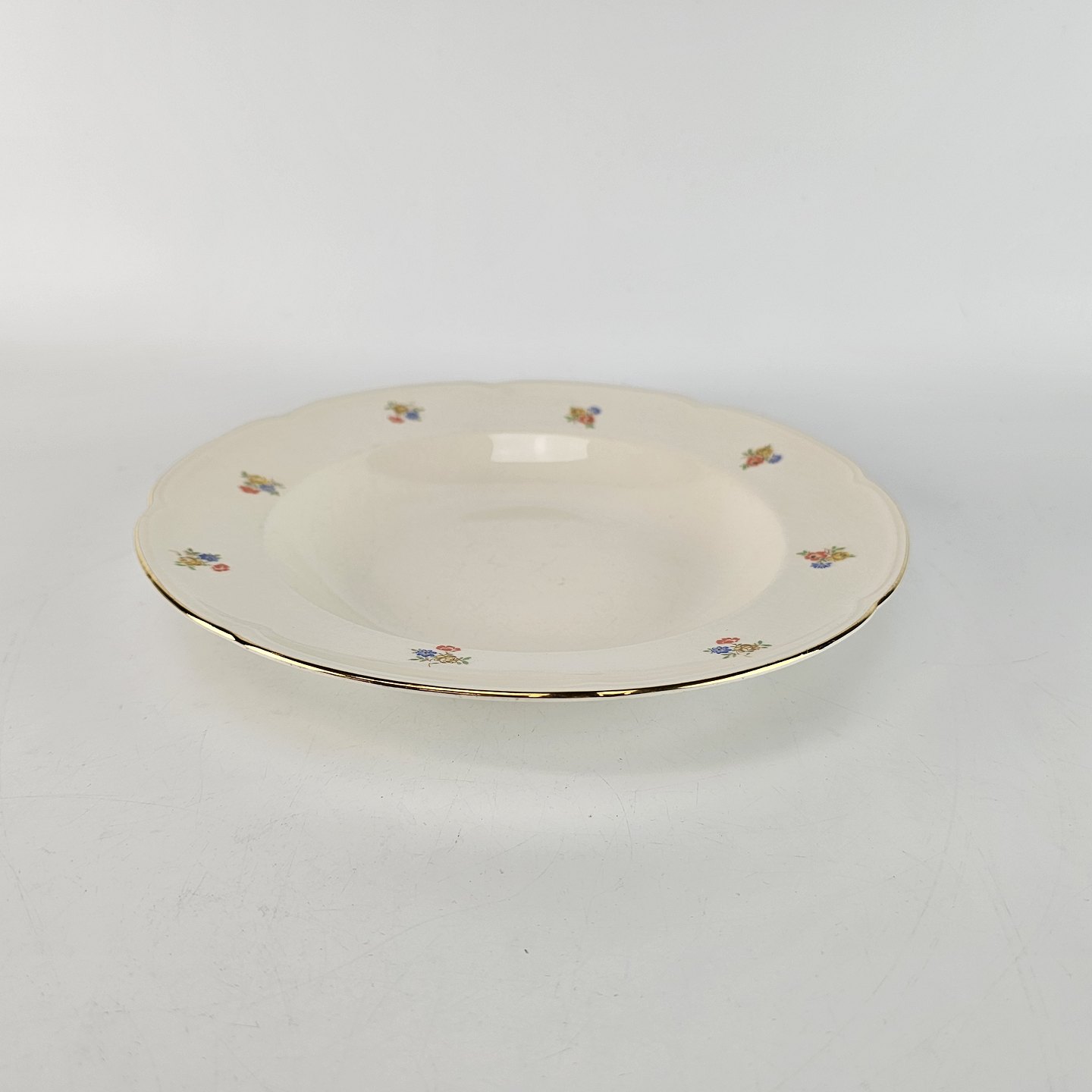 Anna Sofie er hvidt fajance dekoreret med guld kant og små farverige blomster
