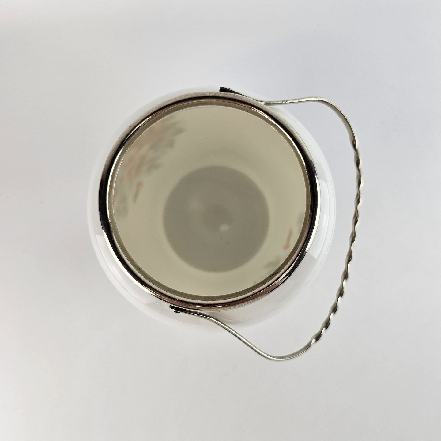 Kiksespand med låg og hank i opalglas.