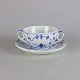 Musselmalet er af kongeligt hvidt porcelæn, dekoreret med rifler og mønster af blå ranker og blomster