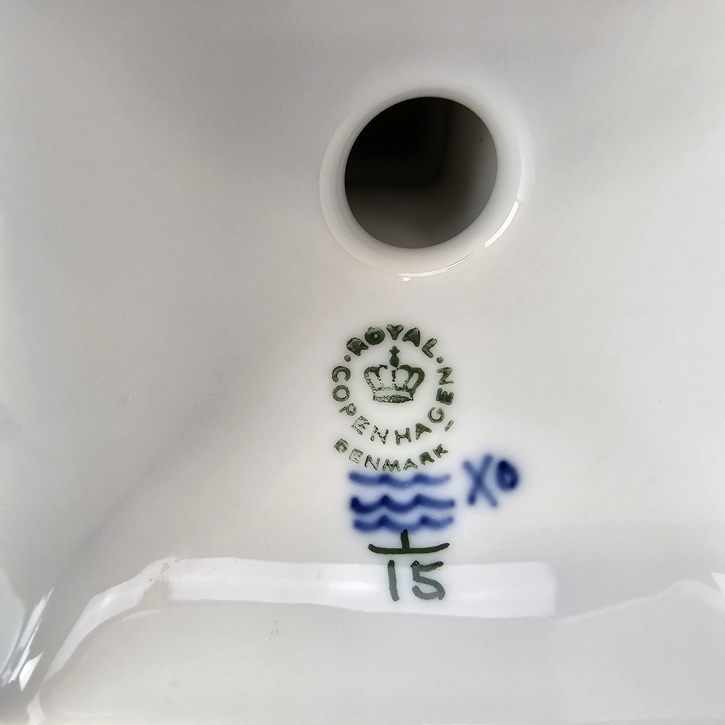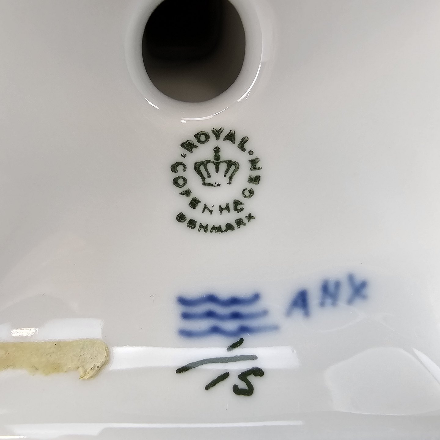 Musselmalet er af kongeligt hvidt porcelæn, dekoreret med mønster af blå ranker og blomster