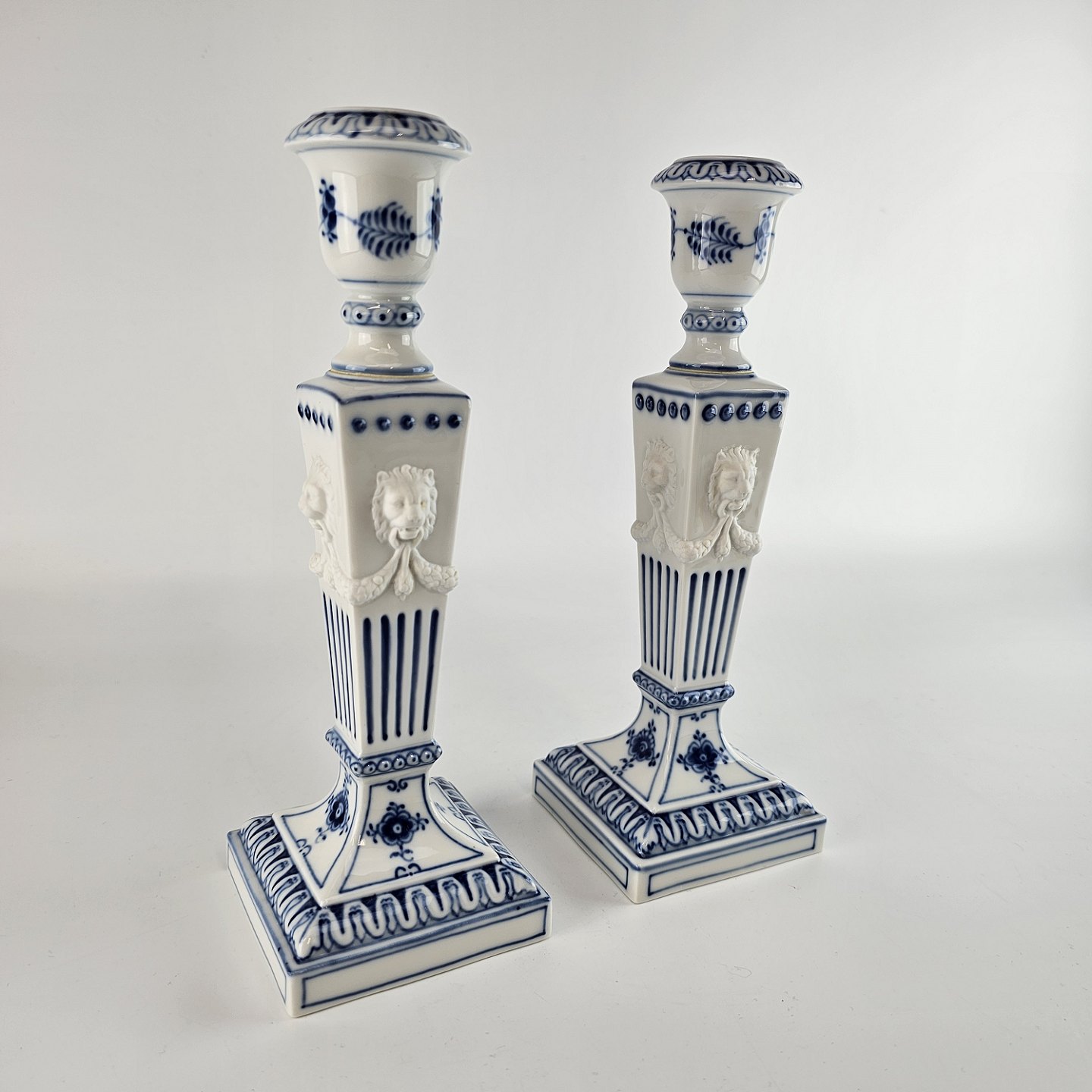 Kongelige lysestager dekoreret med løvehoveder fra stellet Musselmalet Glat nr. 1/15 - (Vi har en stage på lager)