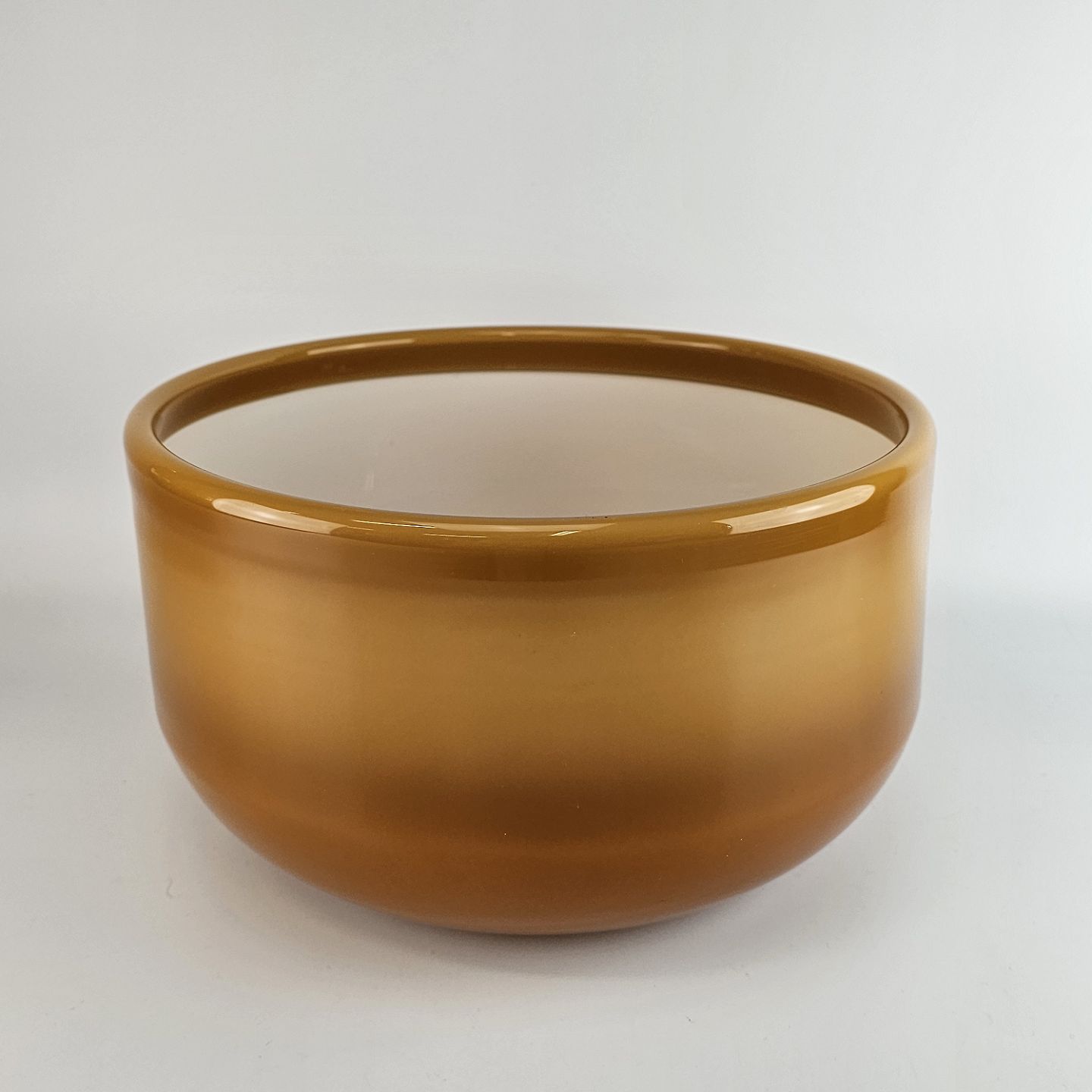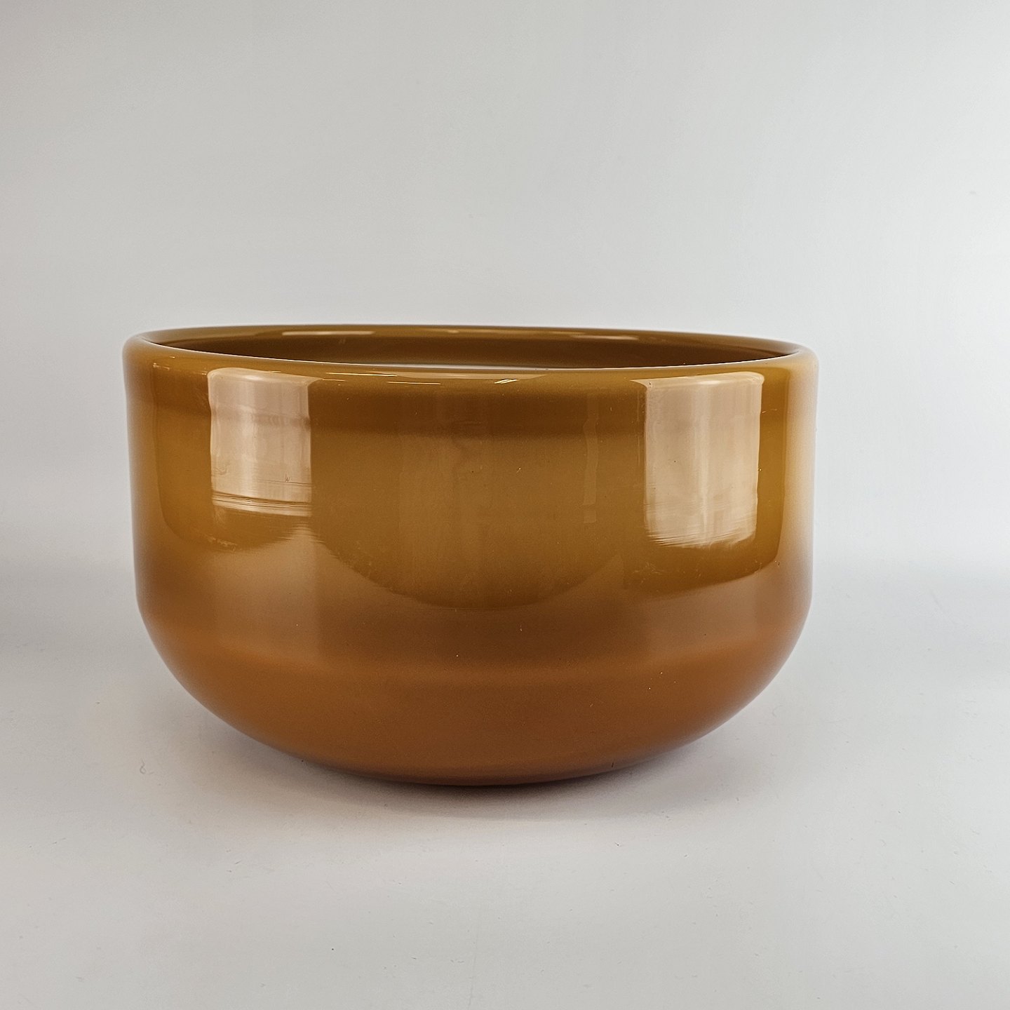 Skål af brunlig mundblæst glas fra serien Palet