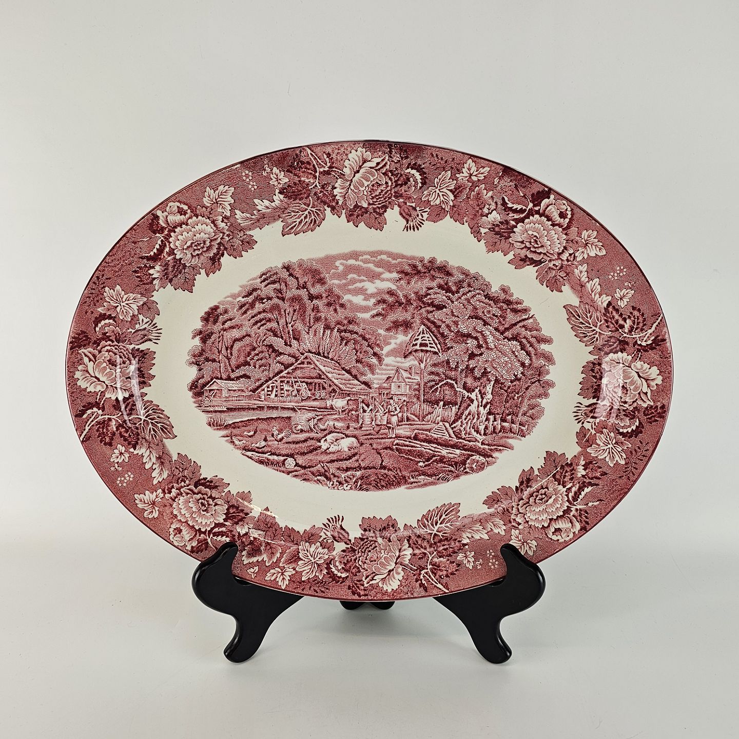 Ovalt fad fra det engelske stel Rød Paris (Enoch wood's, English scenery)