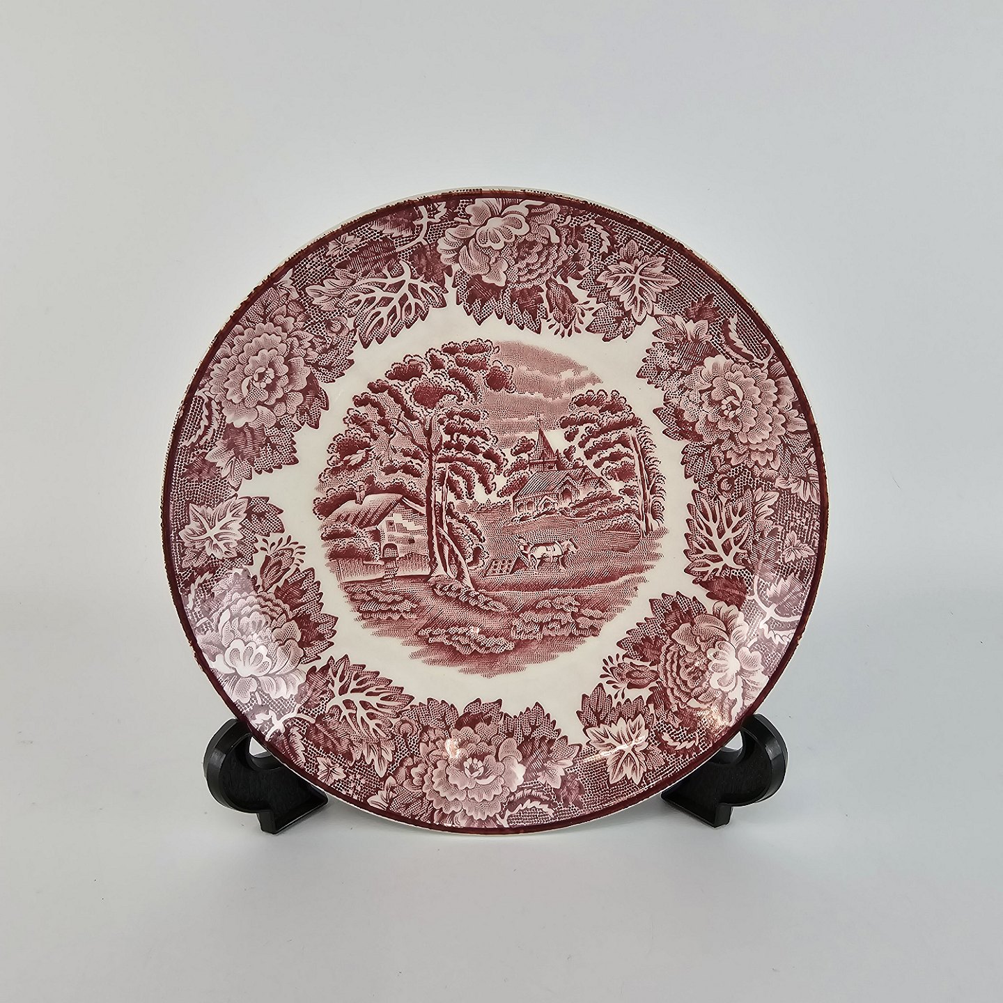 Rød Paris er af engelsk fajance dekoreret med forskellige landskaber og blomster i kanten, alt i forskellige røde nuancer