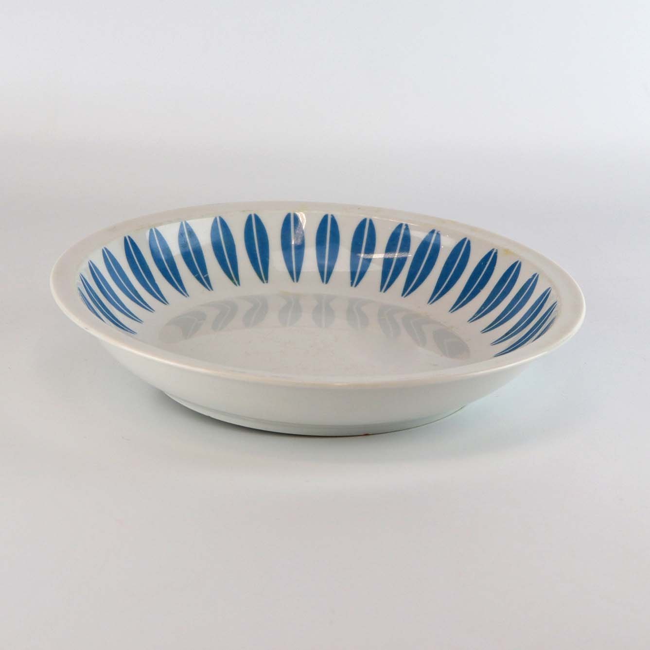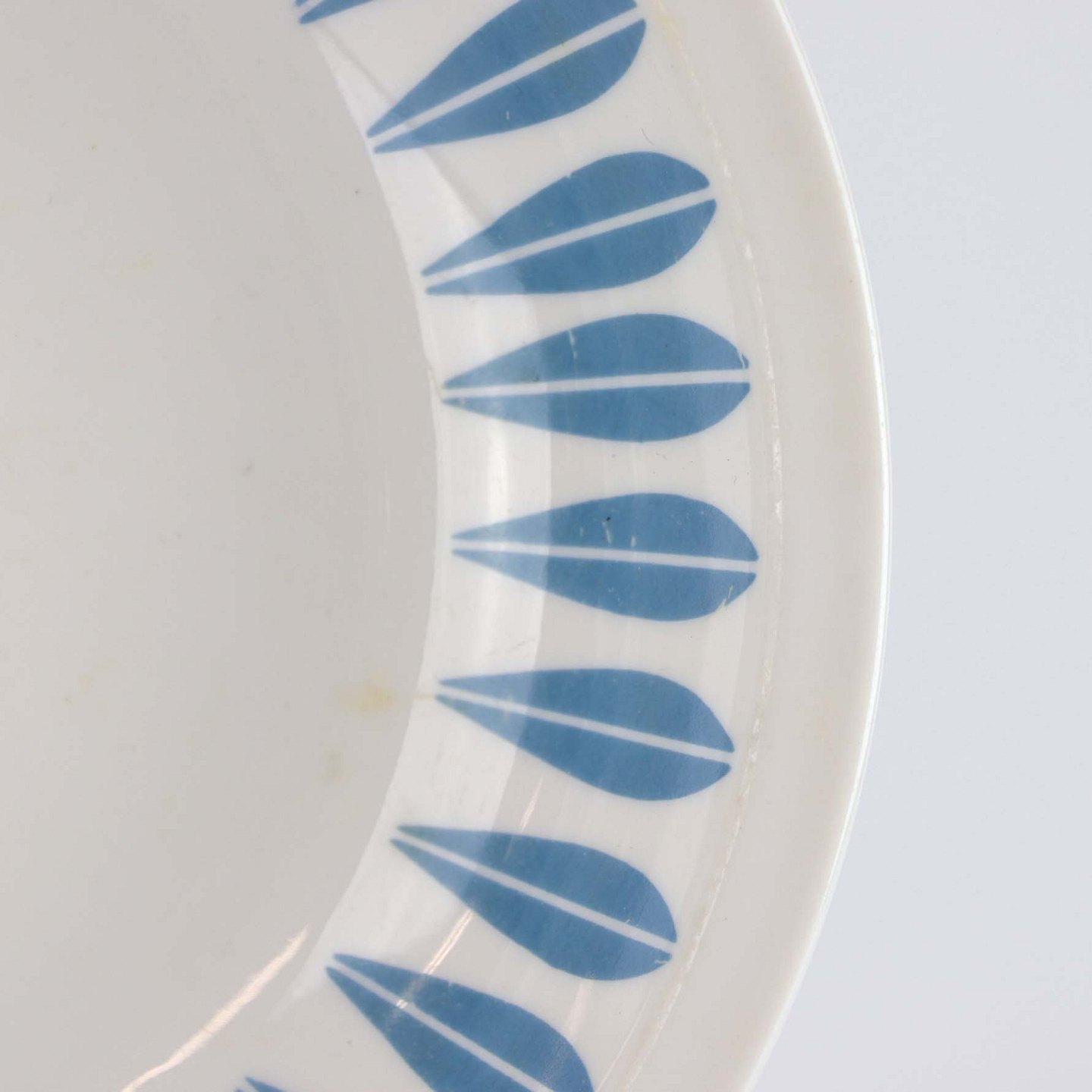 Service i glat hvidt porcelæn, som er påført en cirkel af lotusblade. Stellet er produceret i flere farver