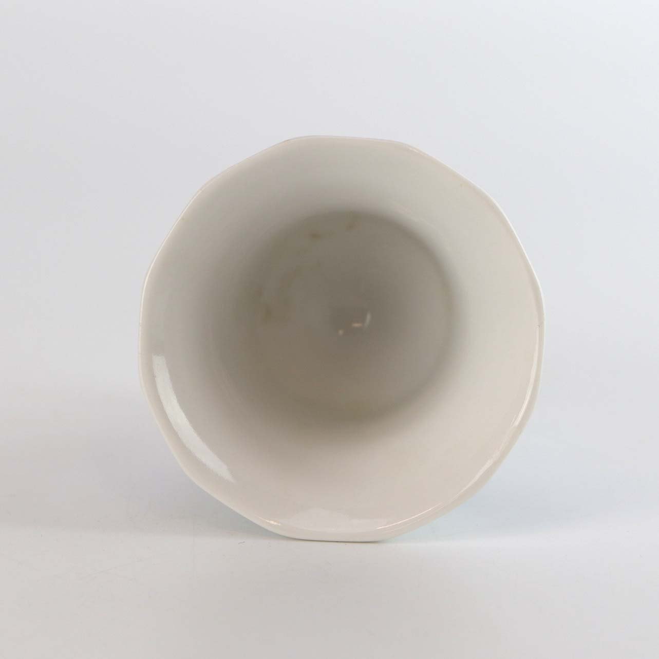 Glat hvidt porcelæn med kantet kant og dekoreret med blå blomster