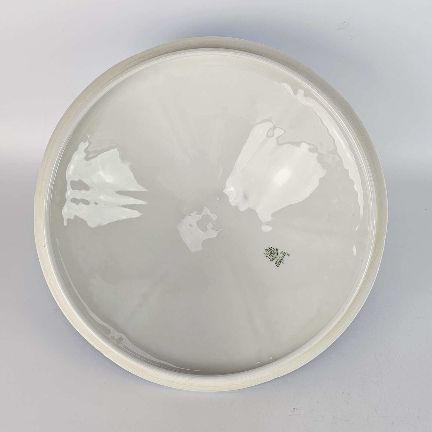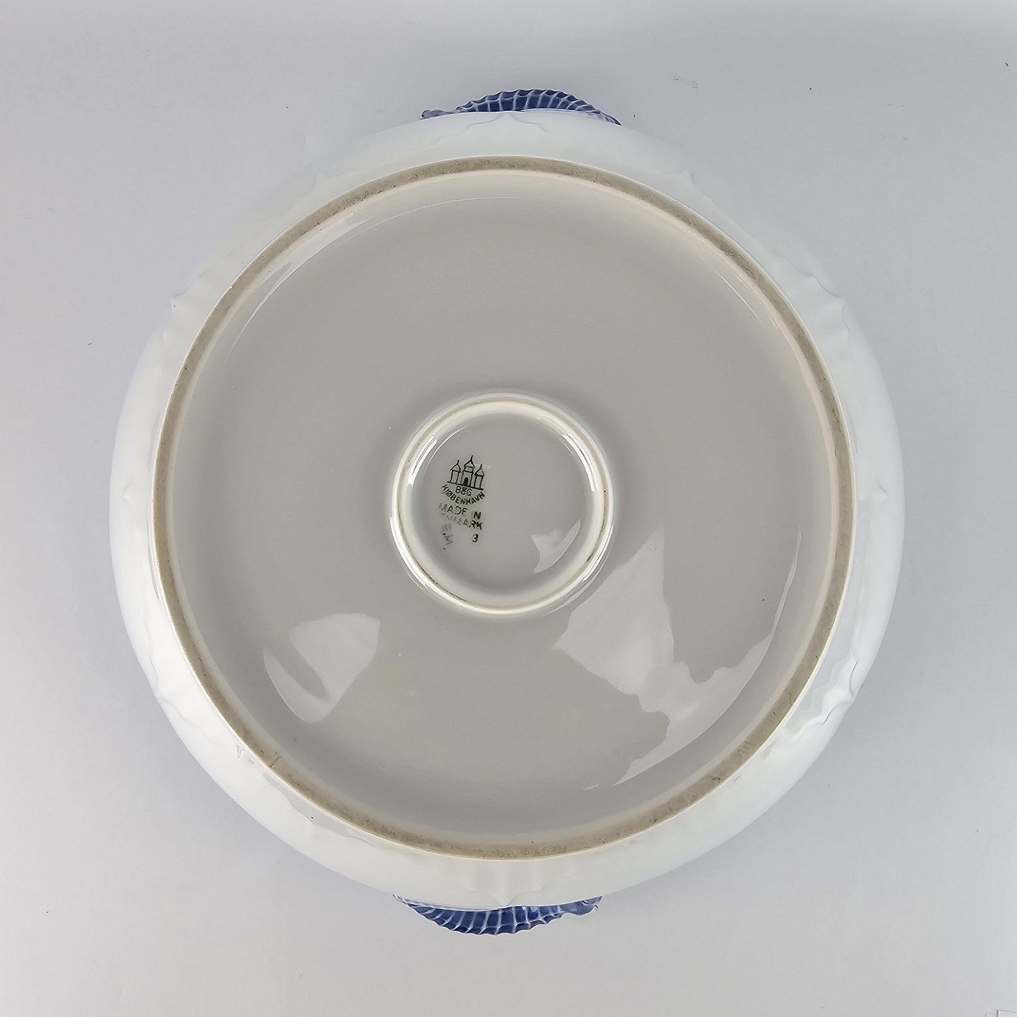 Service i glat porcelæn med skælform i blålige farver og motiv af måger