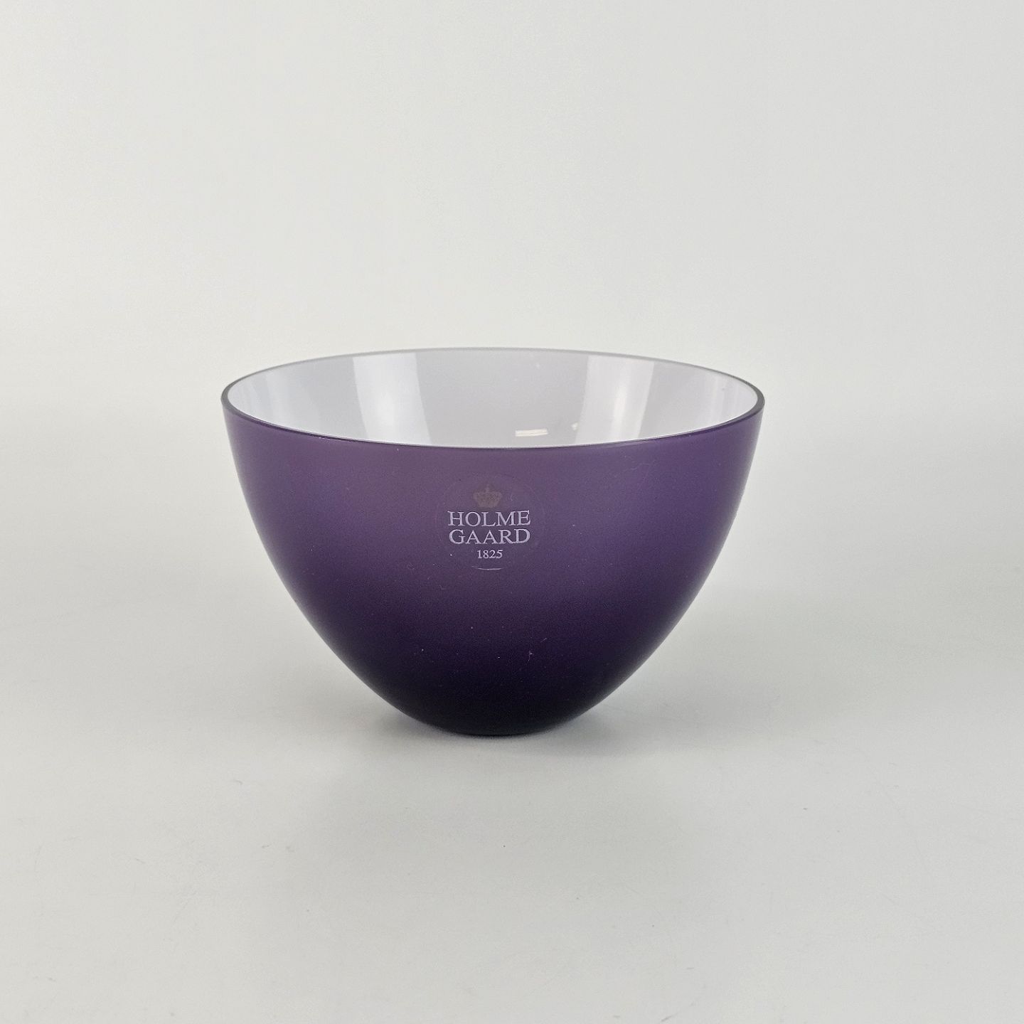 Mundblæst glasskål i lilla og med hvid inderside. Fra serien Cocoon