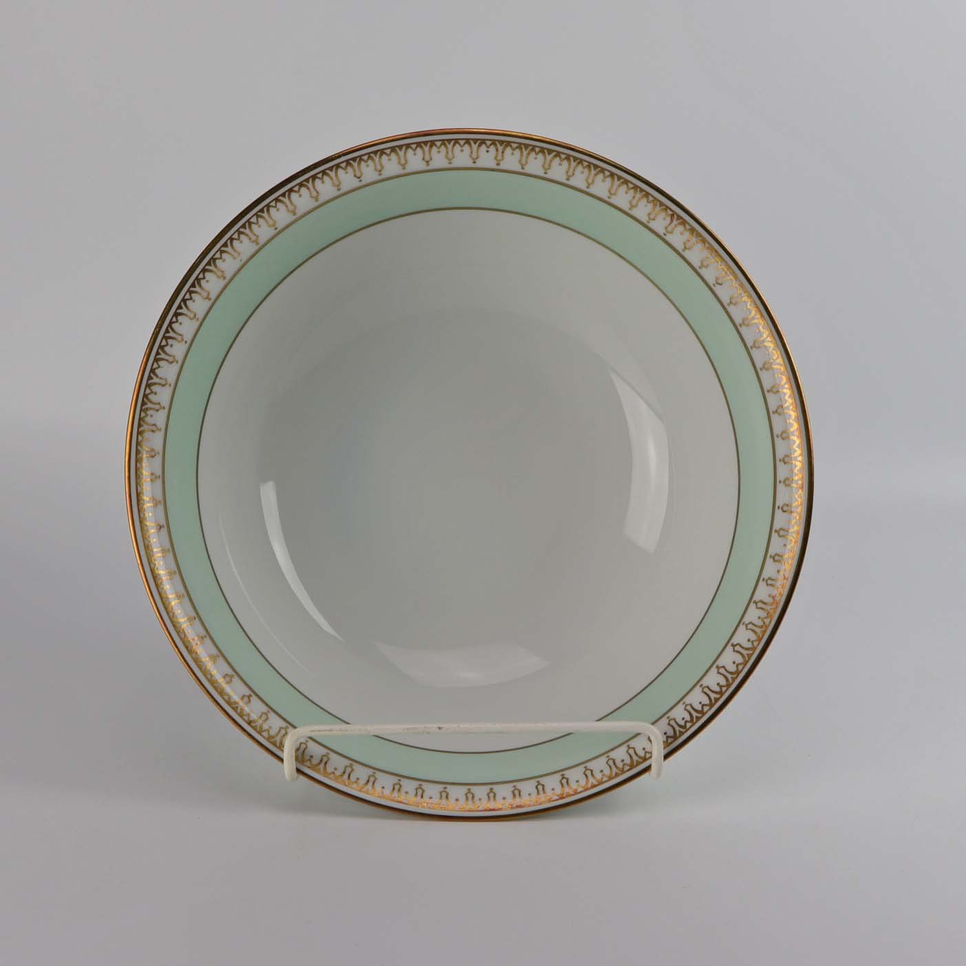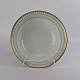 Salatskålen er i glat hvidt porcelæn med lysgrøn bord og forgyldt dekoration