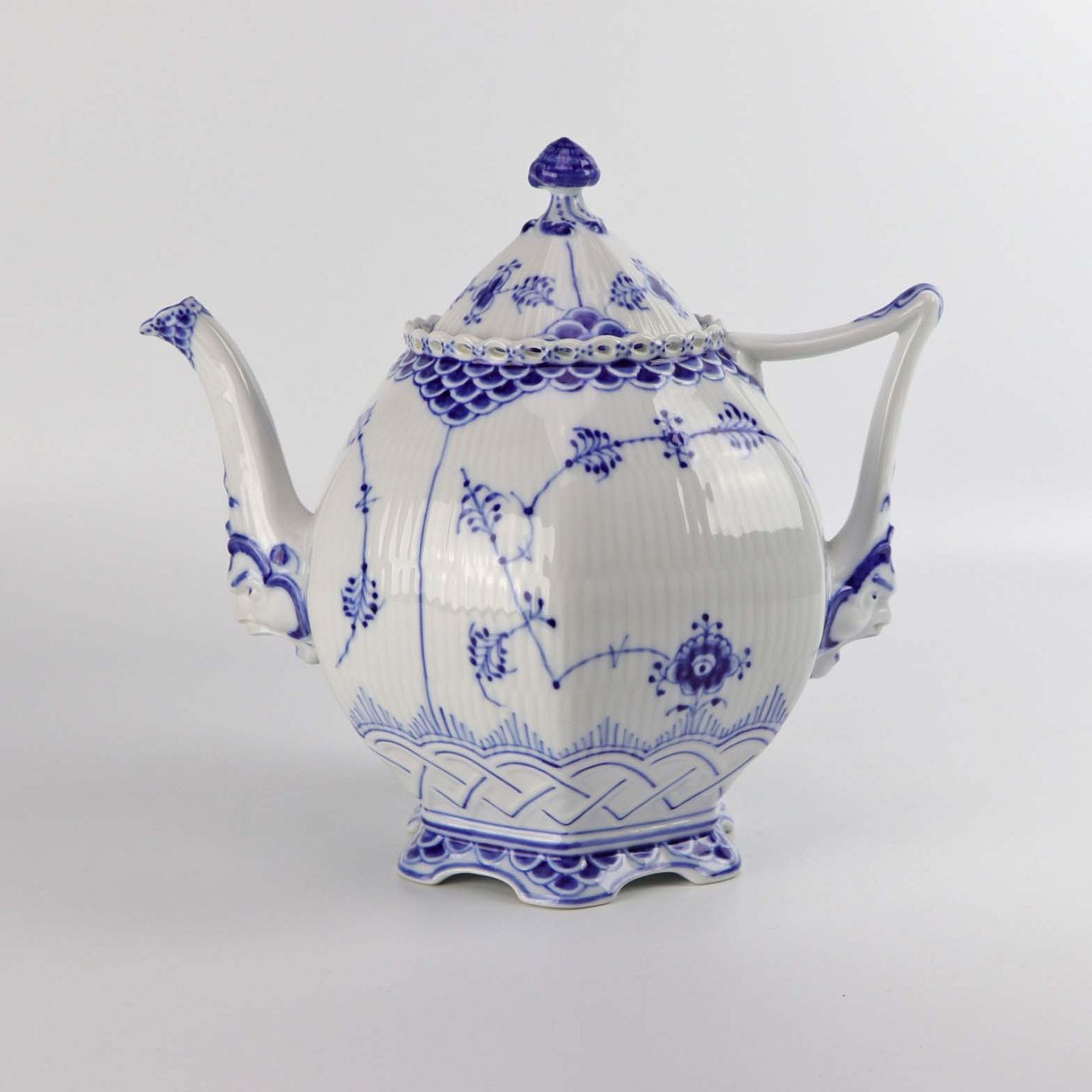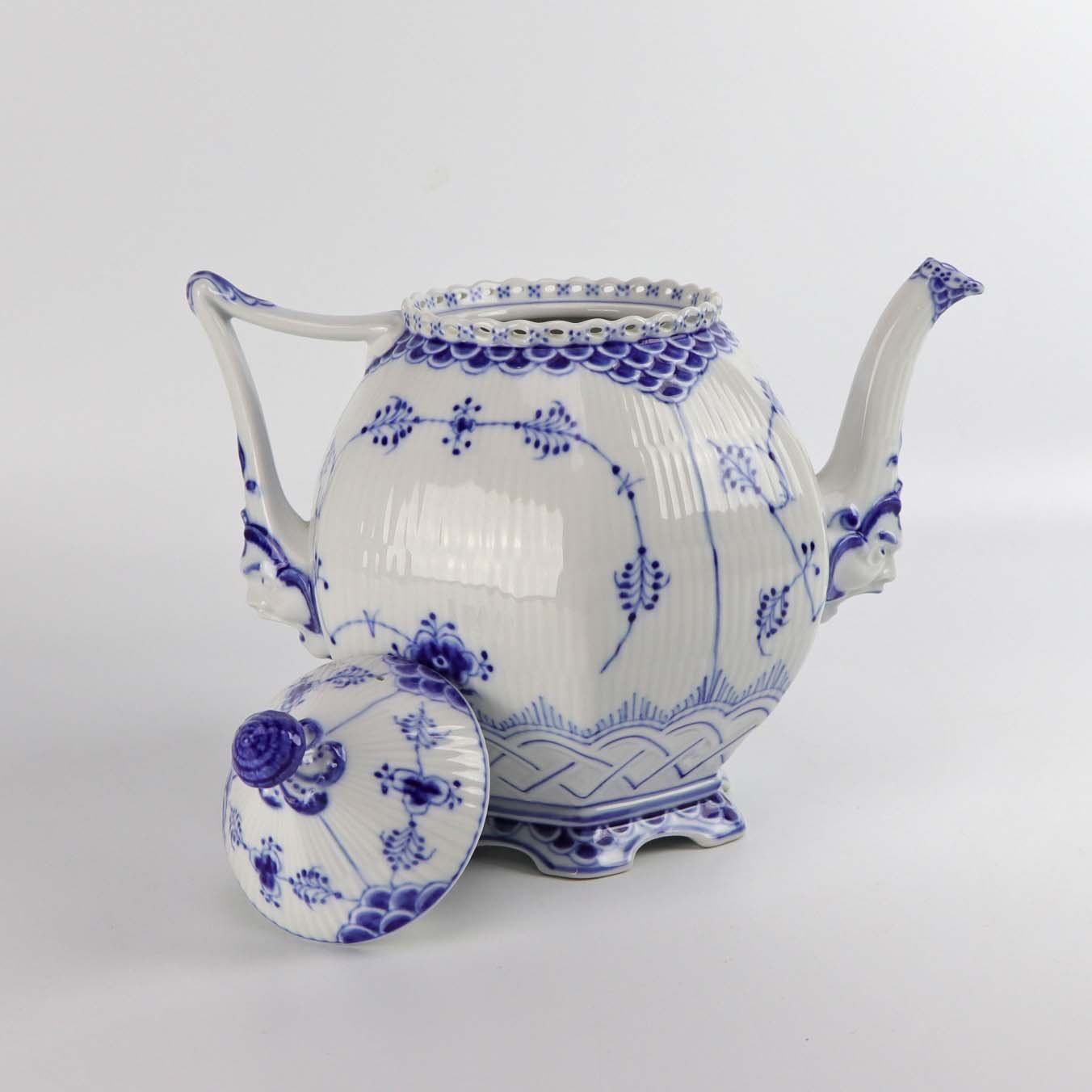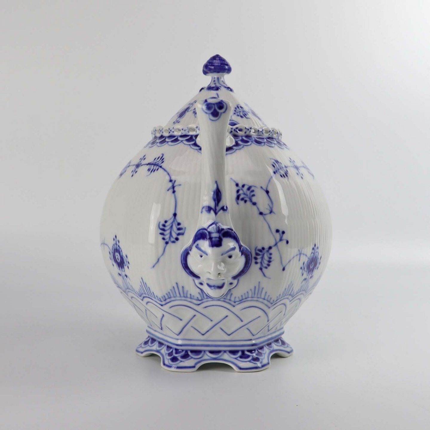 Kongelig tekande i porcelæn fra stellet Musselmalet Helblonde nr. 143 og 142. Kanden kan indeholde 1 liter og er fremstillet i år 2004 i Danmark