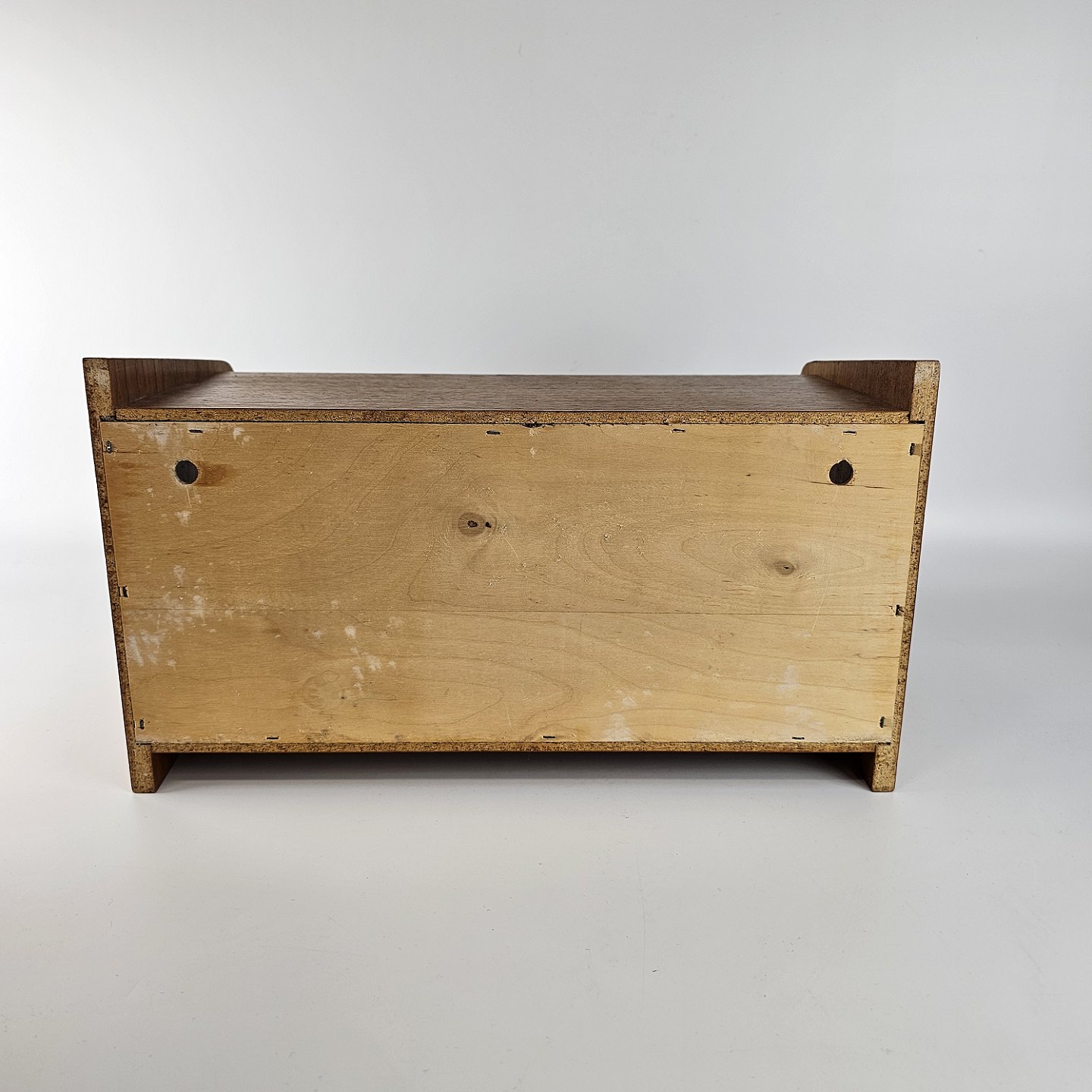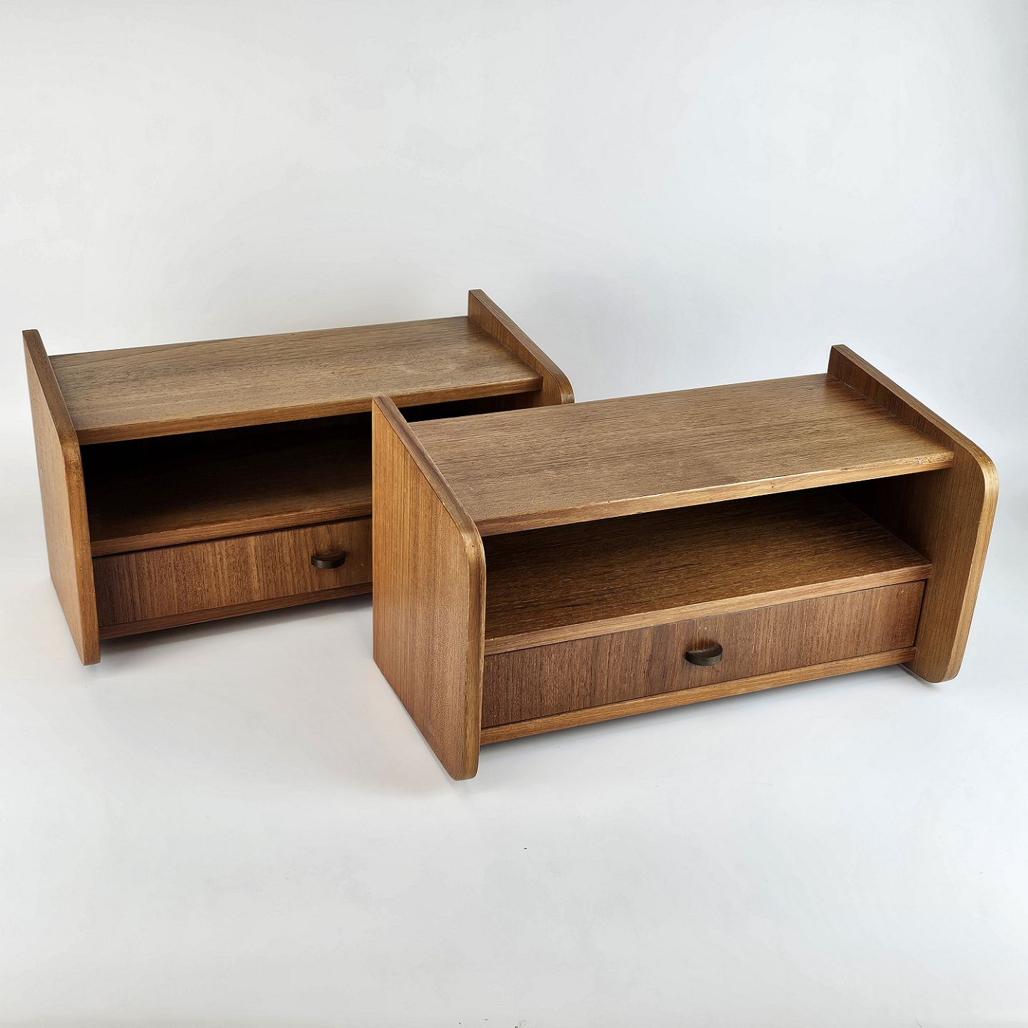 To væghængt natborde af teaktræ. 1 skuffe og 1 hylde
