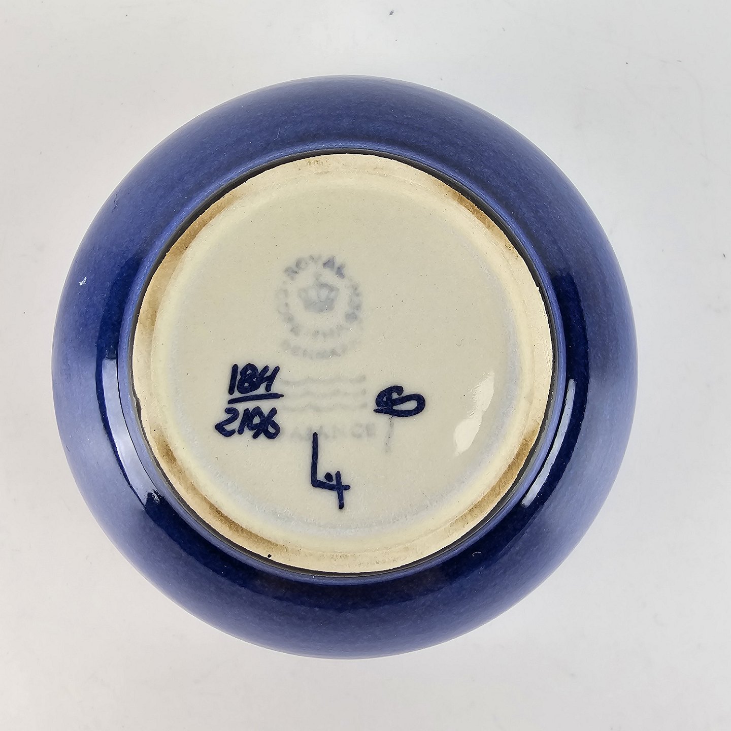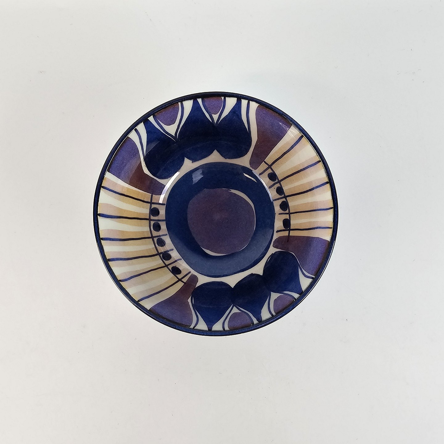 Mørkeblå Tenera skål dekoreret indvendigt med lilla og blå farver Nr. 184/2196