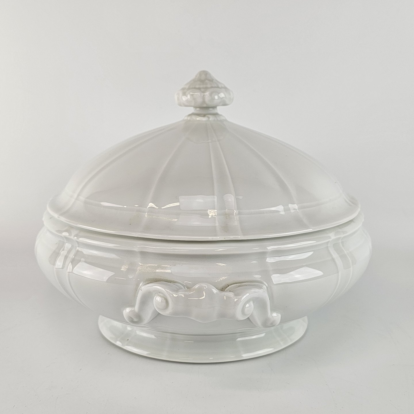 Offenbach er af hvidt porcelæn med et mønster af linjer, der er lavet i porcelænet inden glaseringen. Brugsspor kan forekomme