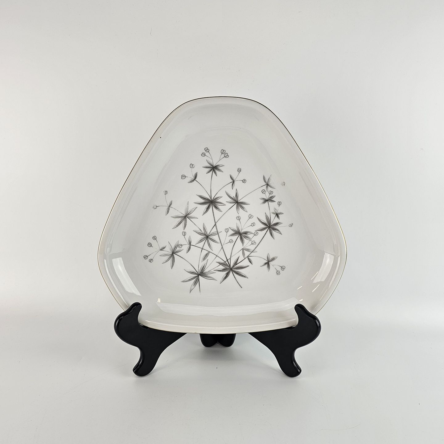 Stellet Henrik er af hvidt porcelæn dekoreret med grå burresnerre og guldkant. Mindre brugsspor kan forekomme