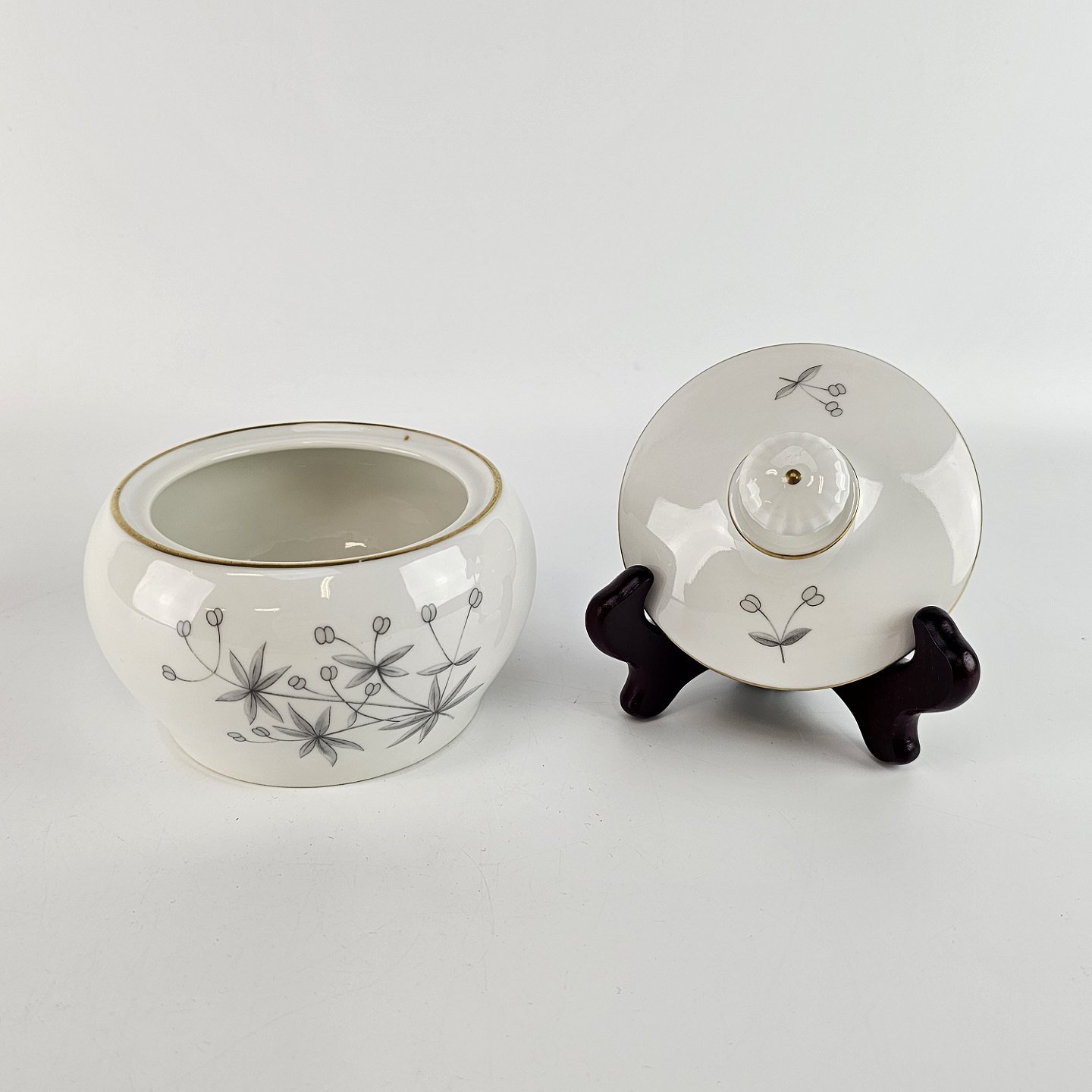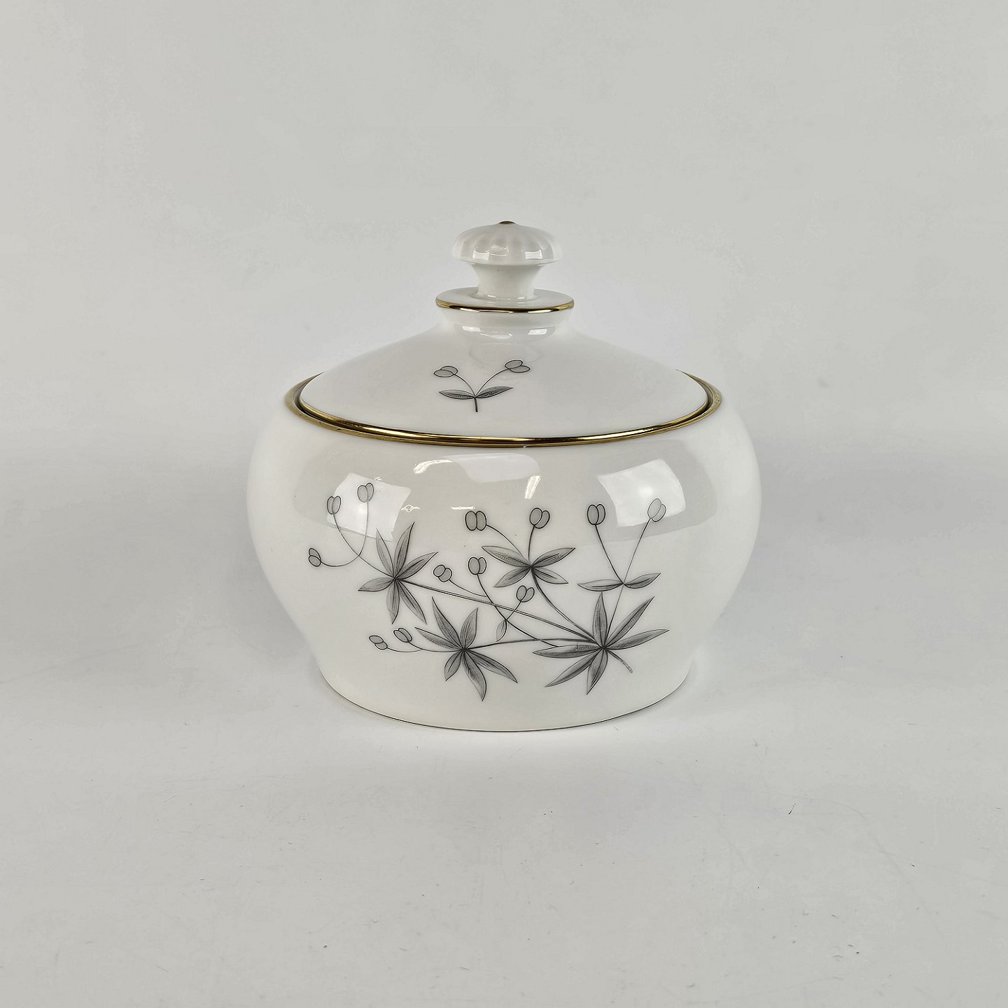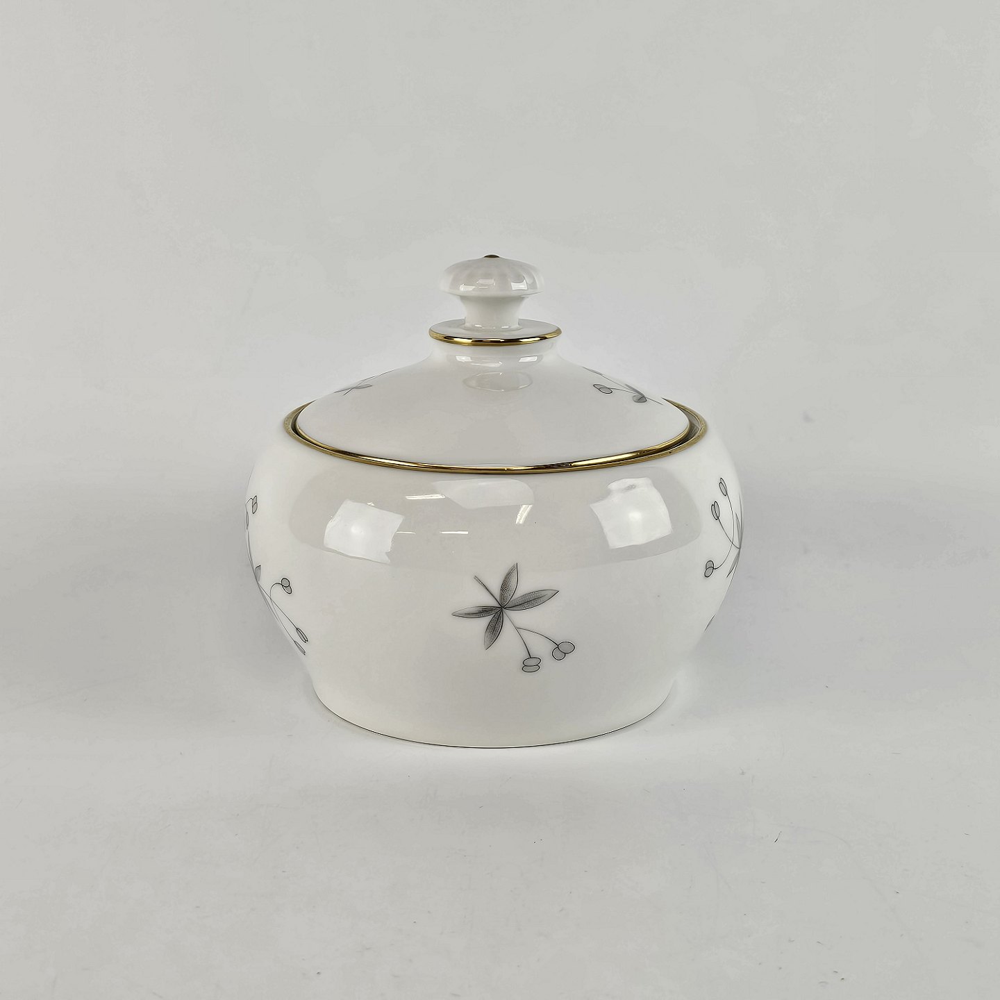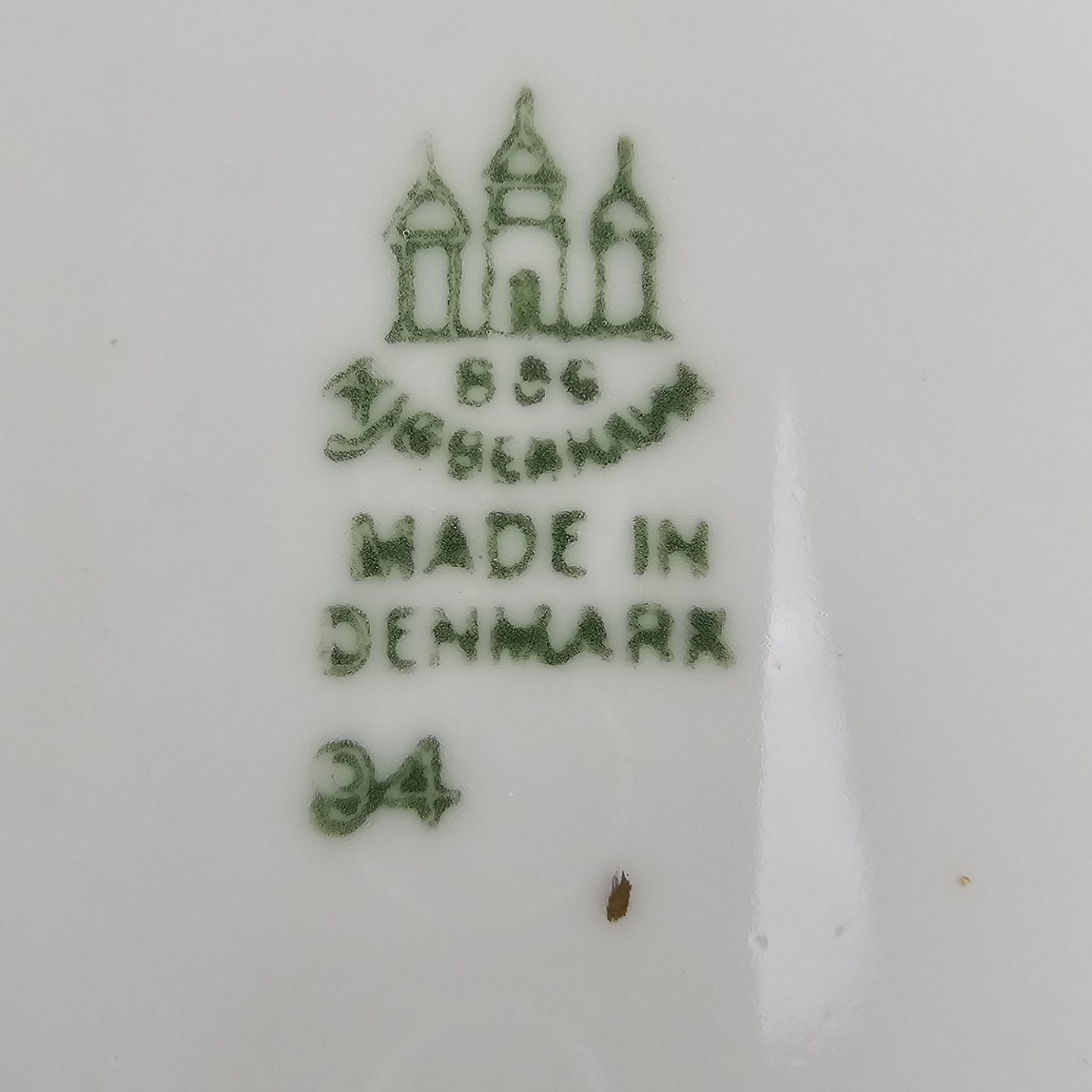 Stellet Henrik er af hvidt porcelæn dekoreret med grå burresnerre og guldkant. Mindre brugsspor kan forekomme