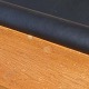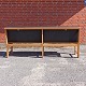 Lang bænk i kirkebænk stilen fremstillet i lakeret egetræ. Bænken har ny polstret ryg samt løs ny polstret sædehynde i sort læder.