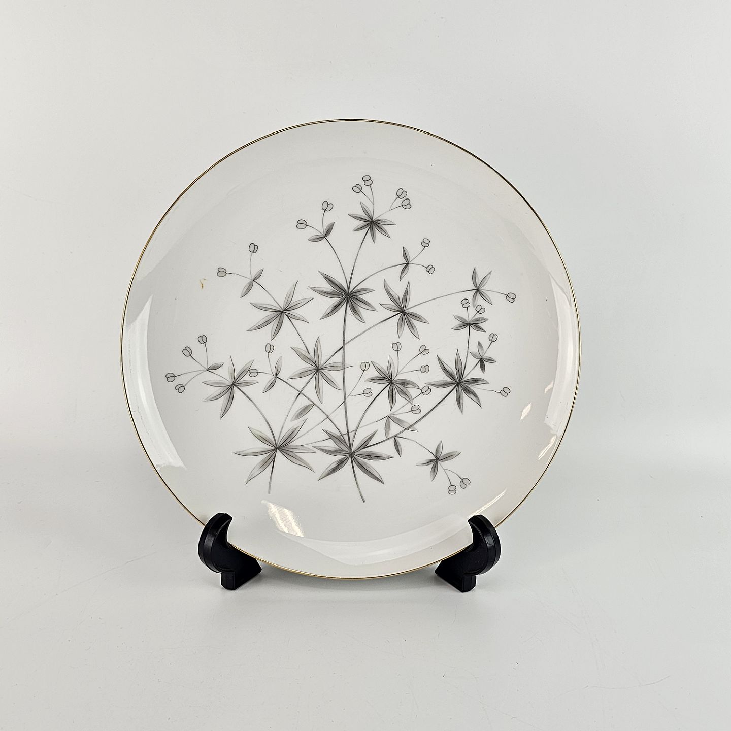 Stellet Henrik er af hvidt porcelæn dekoreret med grå burresnerre og guldkant. Mindre brugsspor kan forekomme