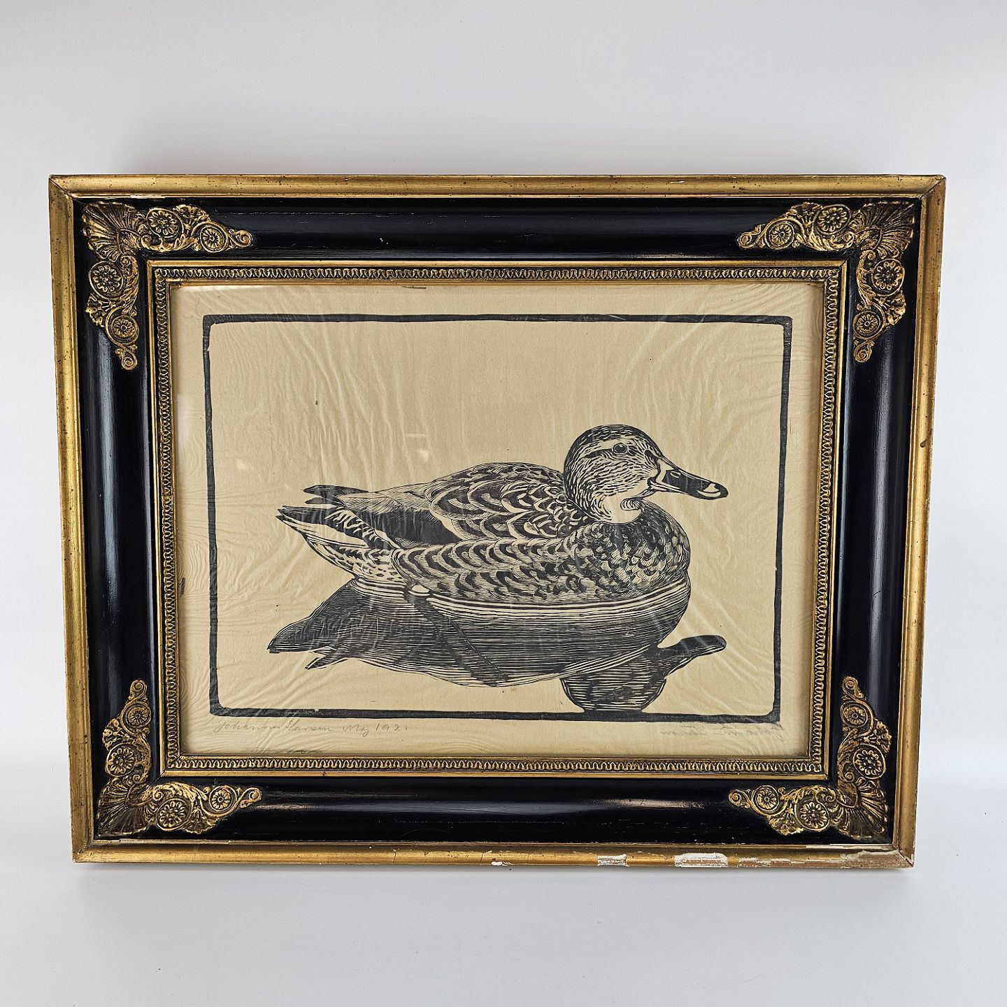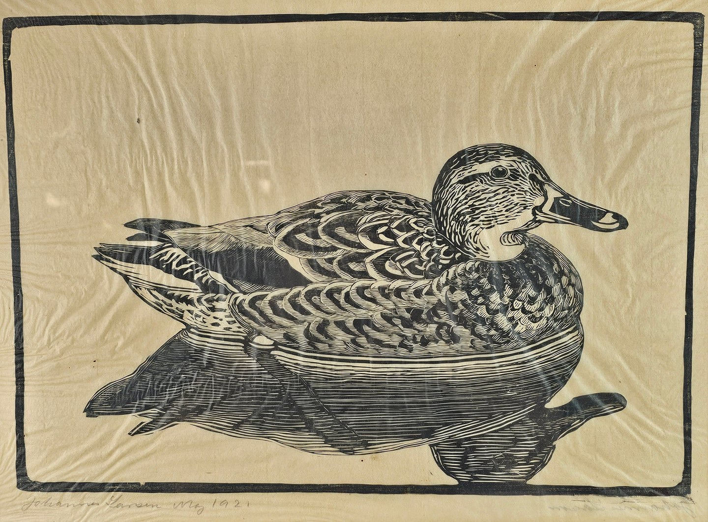 Tryk på papir med motiv af and og skygge. Dateret Maj 1921