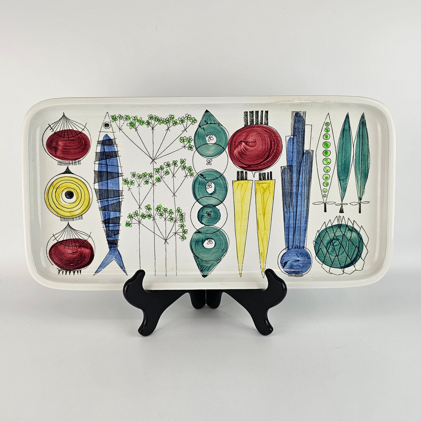 Rektangulært fad i fajance fra serien Picknick. Nr. 33