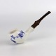 Pibe i glat hvidt porcelæn med blå musselmalet motiv