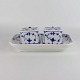 Antik skrivesæt bestående af to blækholdere med låg samt tilhørende fad. Sættet er i glat hvid porcelæn med blåmalet motiv. Ifølge stemplet er dette sæt fremstillet i perioden 1853 - 1895