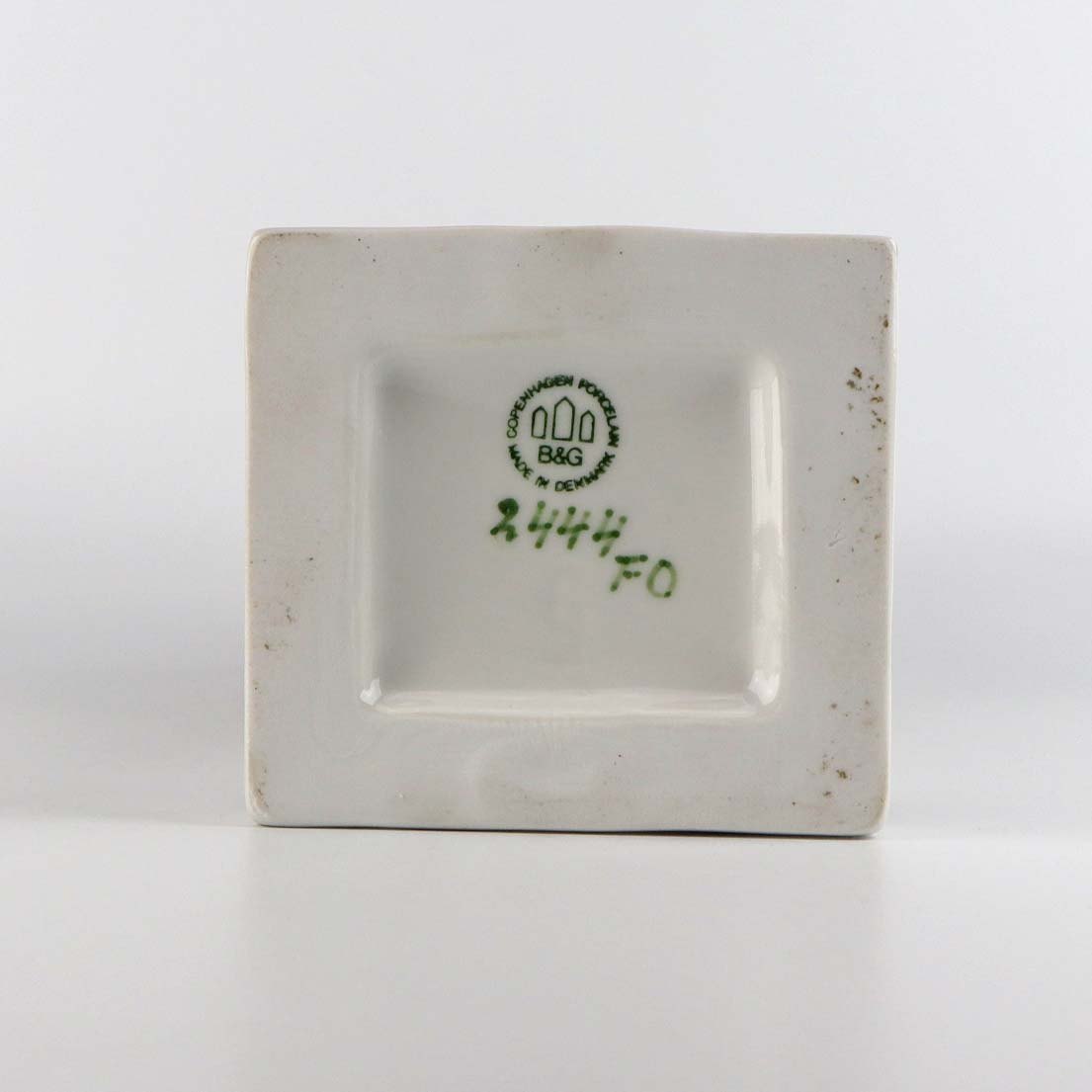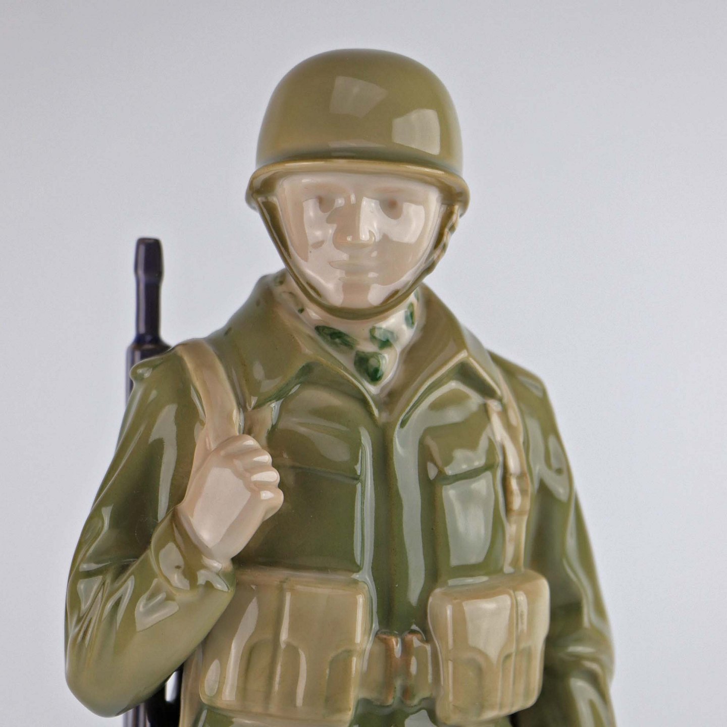 Figur i porcelæn nr. 2444 med motiv af en soldat i kampuniform med gevær og fuld udrustning.